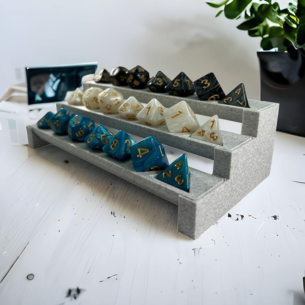 DND Dice Display Stand, 3 tier Stone Color Dice Rack, Fast 5 Second Assembly, Removable D&D Dice Tray Shelves, Holds 3 sets of Polyhedral Dice, Tabletop RPG Display Dice Shelf (Dice not included)🐉