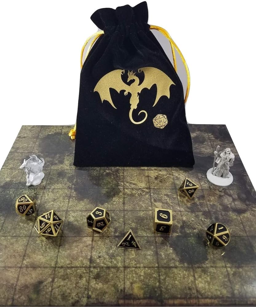 واجه الأمر. تتطلب الزنزانات والتنانين وورهامر وغيرها من الألعاب الإبداع والخيال والذكاء. من الصعب أحيانًا إدخال الأناقة في هذه الألعاب. يمكنك الحصول على نرد معدني بارد ولكن كيف يمكنك حملها في شيء رائع أيضًا. حقيبة التنين الخاصة بنا هي الحل! تتميز هذه الحقيبة عالية الجودة المصنوعة من المخمل والساتان بأنها أنيقة وعملية للغاية وستجعلك جزءًا من زملائك اللاعبين. قد يثير إعجابك كثيرًا من أنك سوف يخفكك بعض الترهل أثناء رمي الإنقاذ القادم! الحقيبة بحجم 7 انش × 5 انش هي الحجم المثالي لحمل جميع النرد الخاصة بك، ومع ذلك يمكن وضعها في جيبك. رضاكم هو هدفنا. أخبرنا إذا لم تكن في هذه الحقيبة بنسبة 100%!