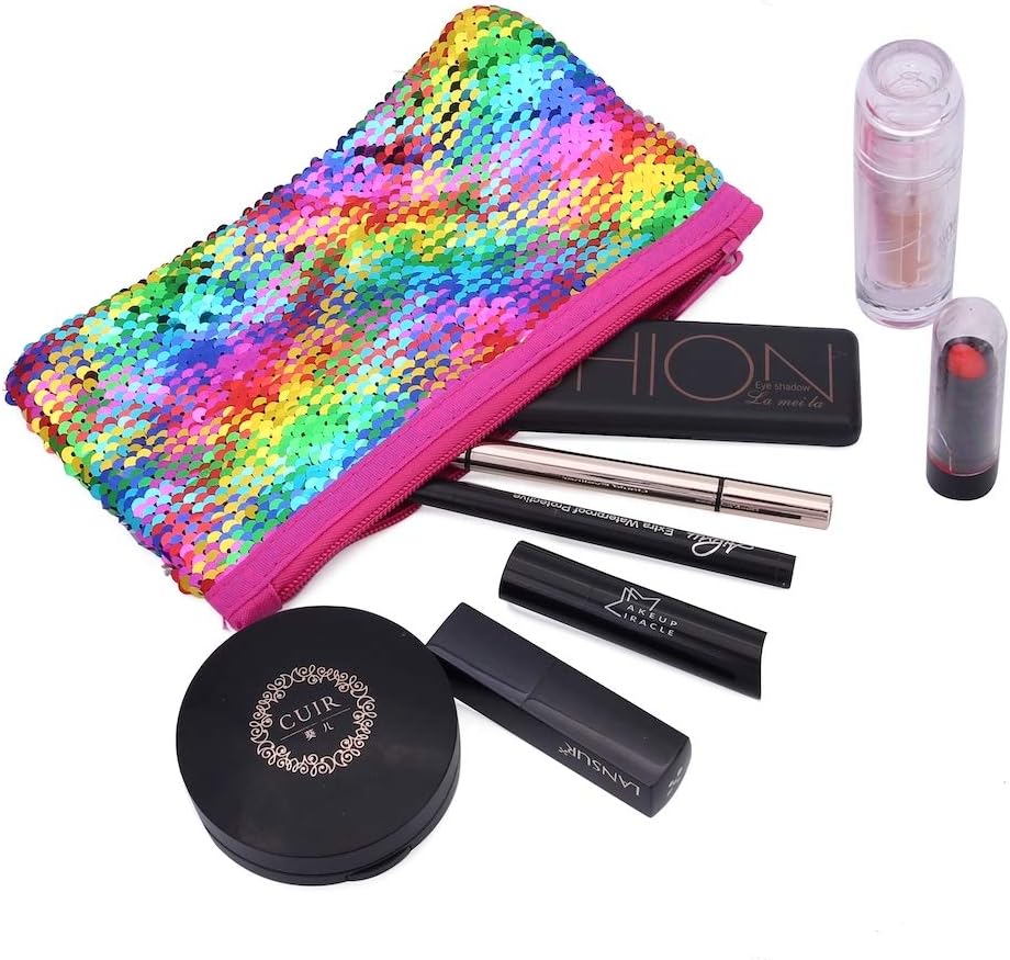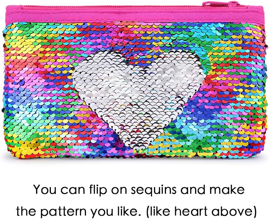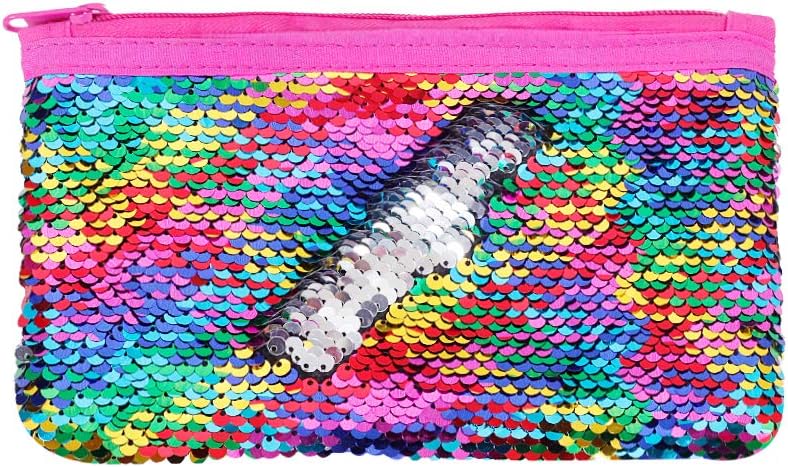 مقلمة لطيفة لامعة قابلة للعكس من الترتر، حافظة اقلام رصاص للبنات مستحضرات التجميل والمكياج حقيبة منظمة للنساء مقاس واحد اس كيو بي سي