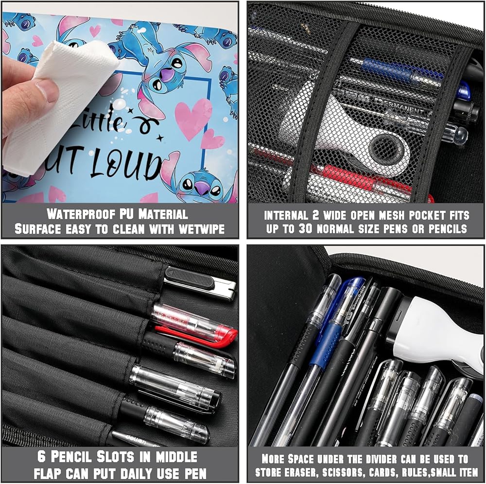 • مقلمة ستيتش - ترمز ستيتش إلى صديق ذكي وصادق ومخلص. ذكّر أحبائك بمدى حبك لهم من خلال إهداء حافظة أقلام ستيتش الجميلة هذه لأحبائك.