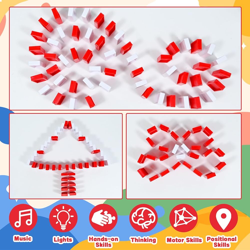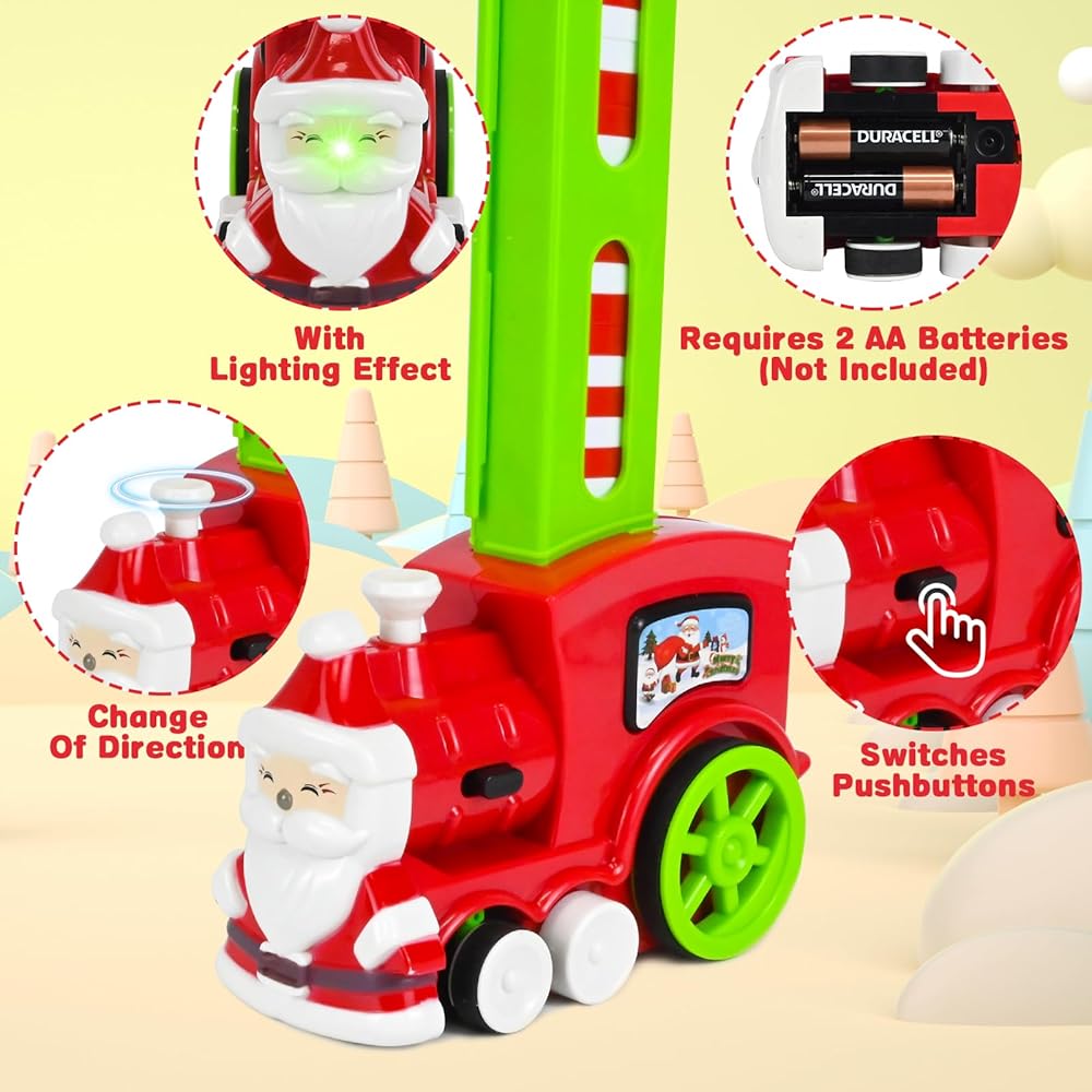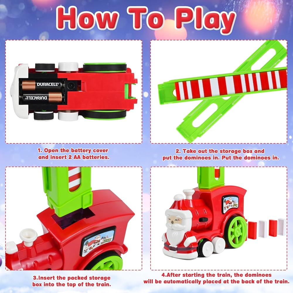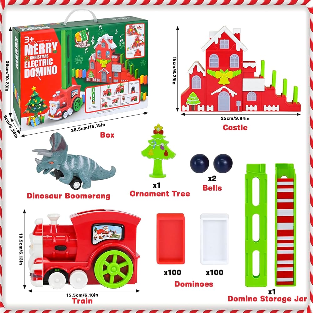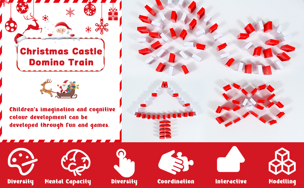 • 【أفضل هدايا الكريسماس】هذه لعبة جديدة ومثيرة للاهتمام بطابع الكريسماس تجمع بين عناصر الدومينو والقطارات والقلاع، إنها لعبة ترفيهية ولعبة تعليمية للأطفال، مثالية كهدية لأعياد الميلاد والكريسماس ورأس السنة الجديدة للأطفال، مما يمنحهم وقت لعب سعيد.