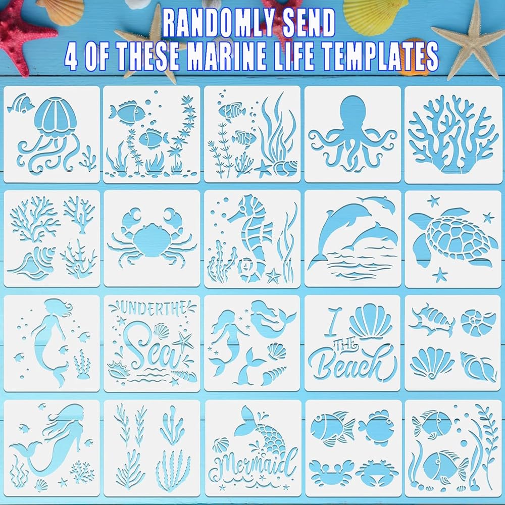 🐬[تأتي مع 4 قطع استنسل للرسم] مجموعة أقلام الطلاء الأكريليك لدينا تأتي مع 4 قوالب مخلوقات بحرية قابلة لإعادة الاستخدام. استنسلات الرسم هذه مصنوعة من مادة البولي إيثيلين تيرفثالات الصديقة للبيئة، مقطوعة بالليزر، متينة للاستخدام، وليس من السهل كسرها، قابلة للغسل وإعادة الاستخدام، وسهلة التنظيف. معهم، يمكن للأطفال الرسم أو الرسم بقدر ما تريد.