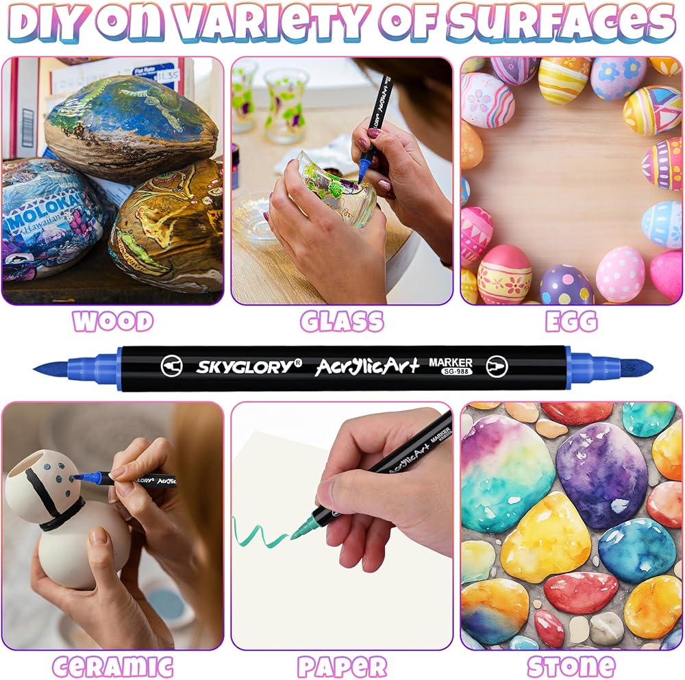 🎃[أقلام طلاء أكريليك متعددة الأغراض] يمكن استخدام مجموعة الطلاء الأكريليك لم يعد يقتصر على الورق، ولكن أيضًا للعديد من المواد المختلفة التي يمكن إبداعها، مثل الرسم الصخري، والألبومات التي تصنعها بنفسك، والقماش، والنسيج، والسيراميك، والبلاط، والزجاج، والخشب، الجلد، المعدن، السبورة، زخرفة عيد الميلاد، ملصقات الجرار، إضافة زخرفة لعلامات الكتابة على الجدران، وصنع البطاقات، ومجموعات اليقطين، وبيض عيد الفصح، ومعظم الأسطح.