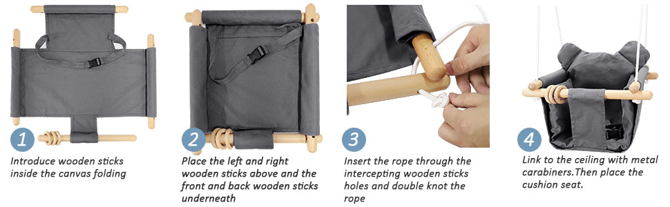 أرجوحة التعليق للأطفال مصنوعة من قماش عالي الجودة وخشب أملس، ويأخذ تصميمها في الاعتبار المتانة والأداء الوظيفي والمظهر.