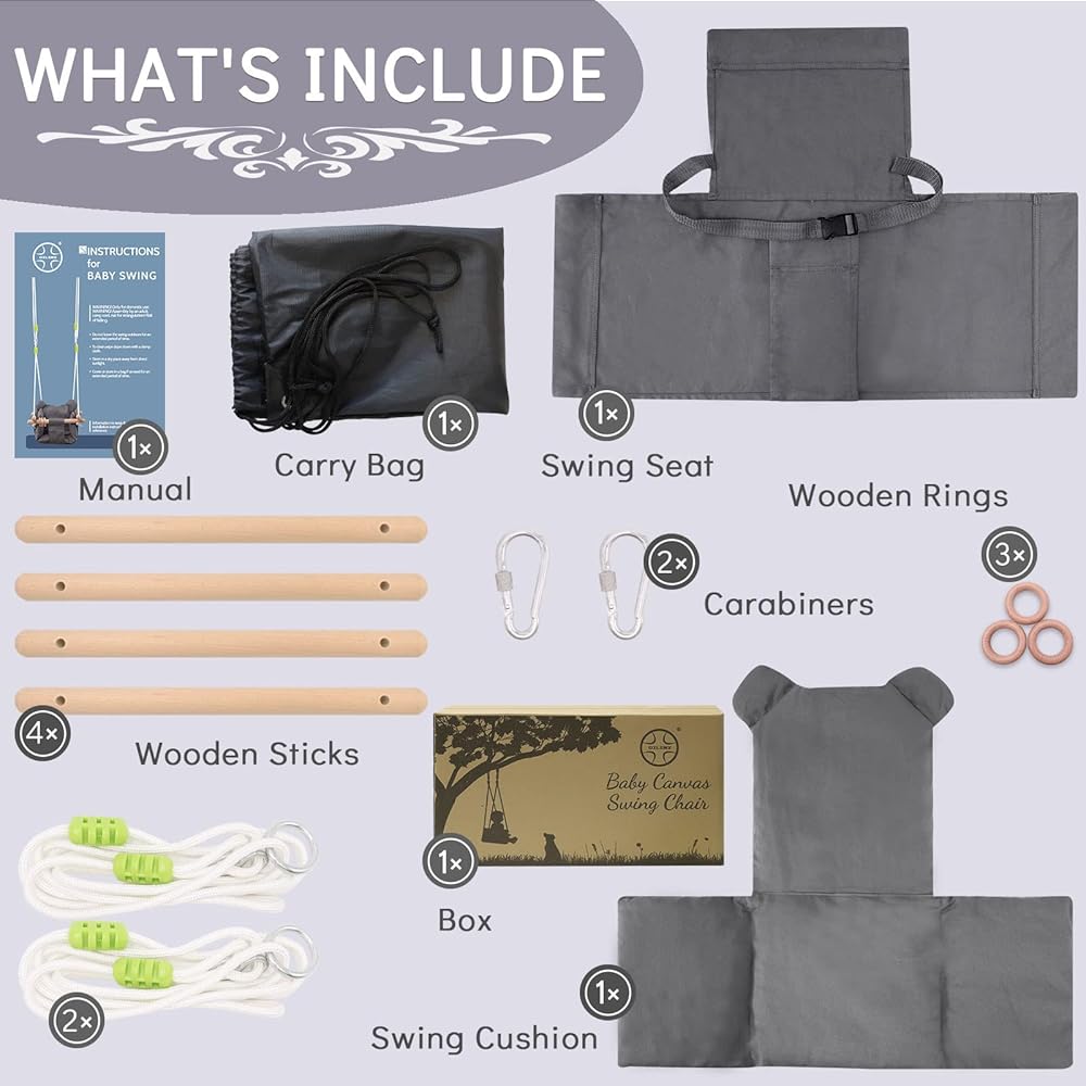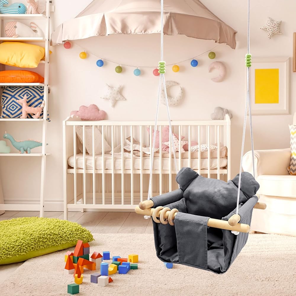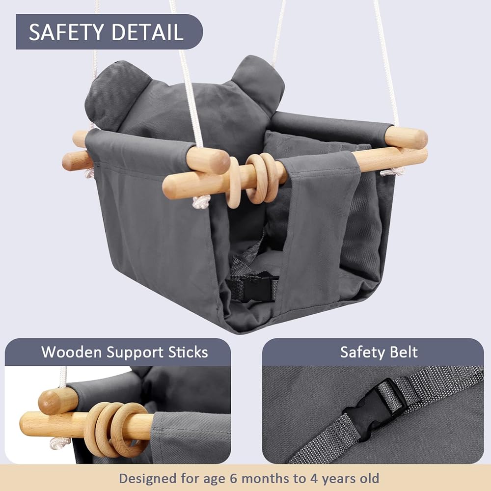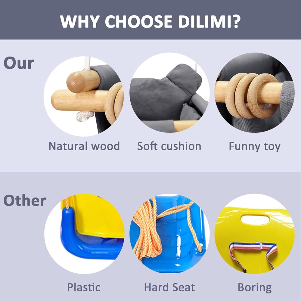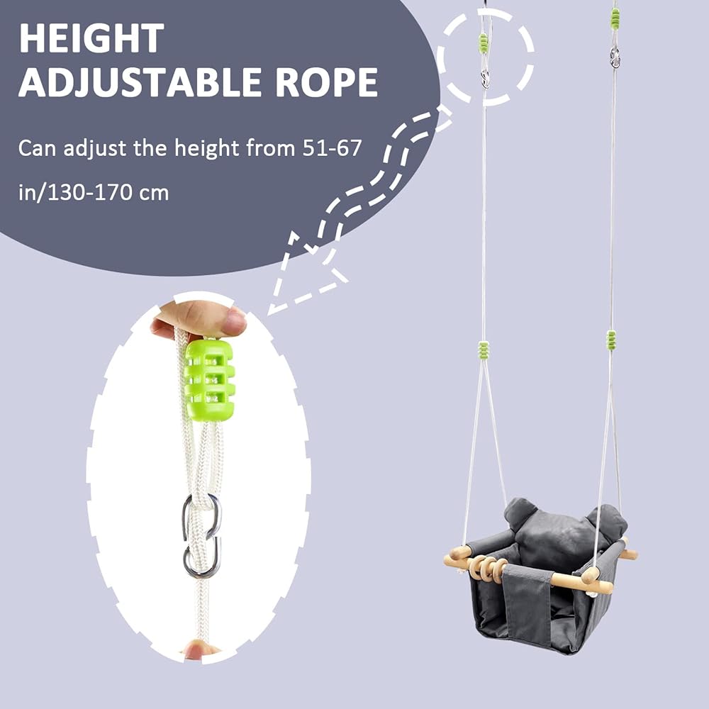 مقعد أرجوحة الأطفال هذا مجهز بحبال قابلة للتعديل ومقاومة للاهتراء وله قدرة تحمل ممتازة. وسادة المقعد القابلة للإزالة أكثر راحة ونعومة.