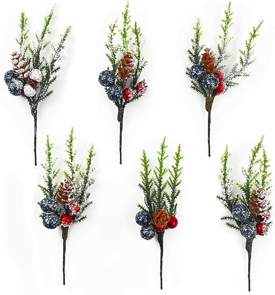 Asikkon الاصطناعي عيد الميلاد التوت الأحمر ينبع فروع الصنوبر الاصطناعي 6 حزمة التوت الأحمر الصنوبر فو يختار لعيد الميلاد الشتاء عطلة زهرة ترتيبات هدية حفلة زينة شجرة عيد الميلاد، B-6PCS