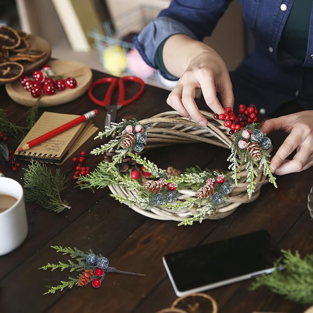 • 🎄🎅 فروع الصنوبر: فروع الصنوبر دائمة الخضرة في مركز استقبال الزفاف مصنوعة يدوياً بعناية. مجموعة سيقان التوت الصناعية يمكن أن تزين حفلات العطلات ومراكز البوفيه، وتخطيطات الطاولة، وديكورات تغليف الهدايا، وتنظيم الزهور، وسجلات القصاصات، والمزهريات أو الباقات المعلبة، وتزيين المطابخ والكراسي والمقاعد.