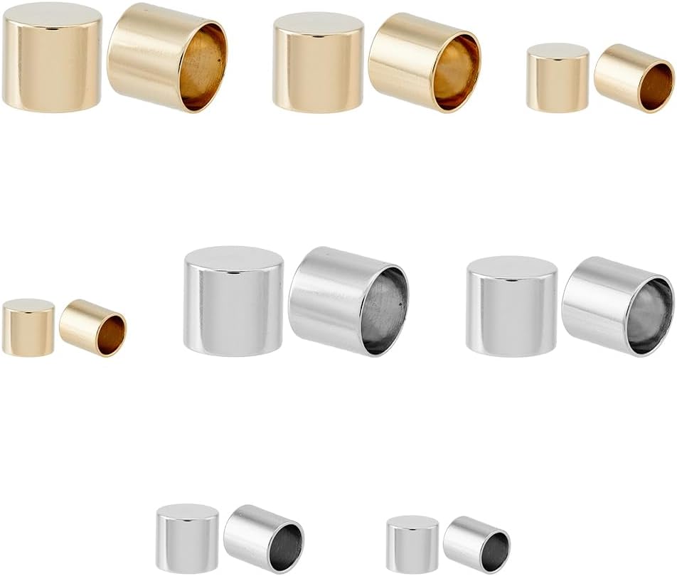 SUPERFINDINGS 16 قطعة 201 سلك من الفولاذ المقاوم للصدأ ينتهي بـ 4 مقاسات من أغطية نهاية الحبل الجلدي سلك 3/5/8/9 مم القطر الداخلي أغطية نهاية عمود إنهاء الحبل مشبك حلقة برميل لصنع المجوهرات