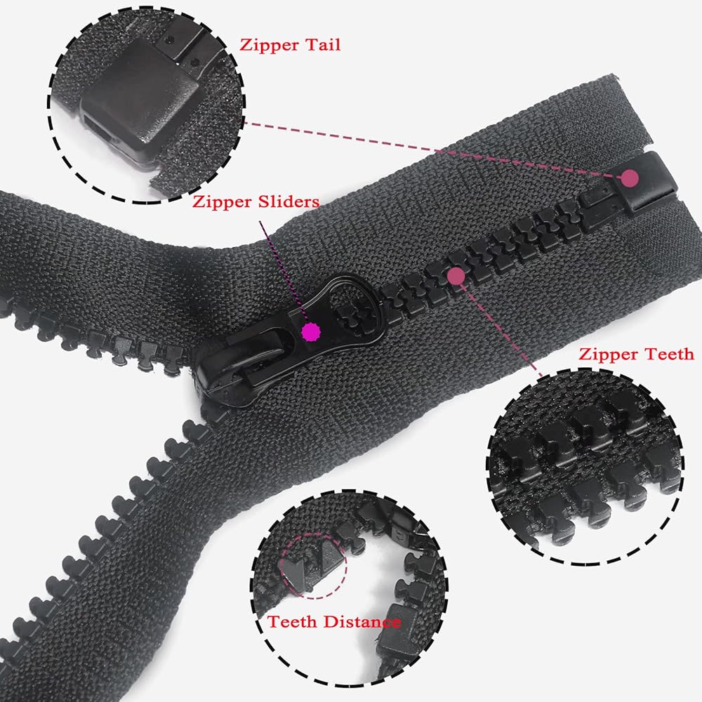 【سحابات ملابس متعددة الأغراض】استبدال سحاب السترة يفتح ويغلق بسلاسة شديدة، سحابات منفصلة سوداء للحرف اليدوية والمحافظ وحقائب الظهر والقمصان الثقيلة والسترات السفلية وملابس الحيوانات الأليفة وملابس العمل والفساتين والخيام والقمصان والوسائد والوسائد والقمصان الداخلية وسترات الرياح، الملحقات الزخرفية. تعتبر السوستة المنفصلة مناسبة أيضًا لجميع مستويات المجاري والمصممين والمطرزات والحرفيين.