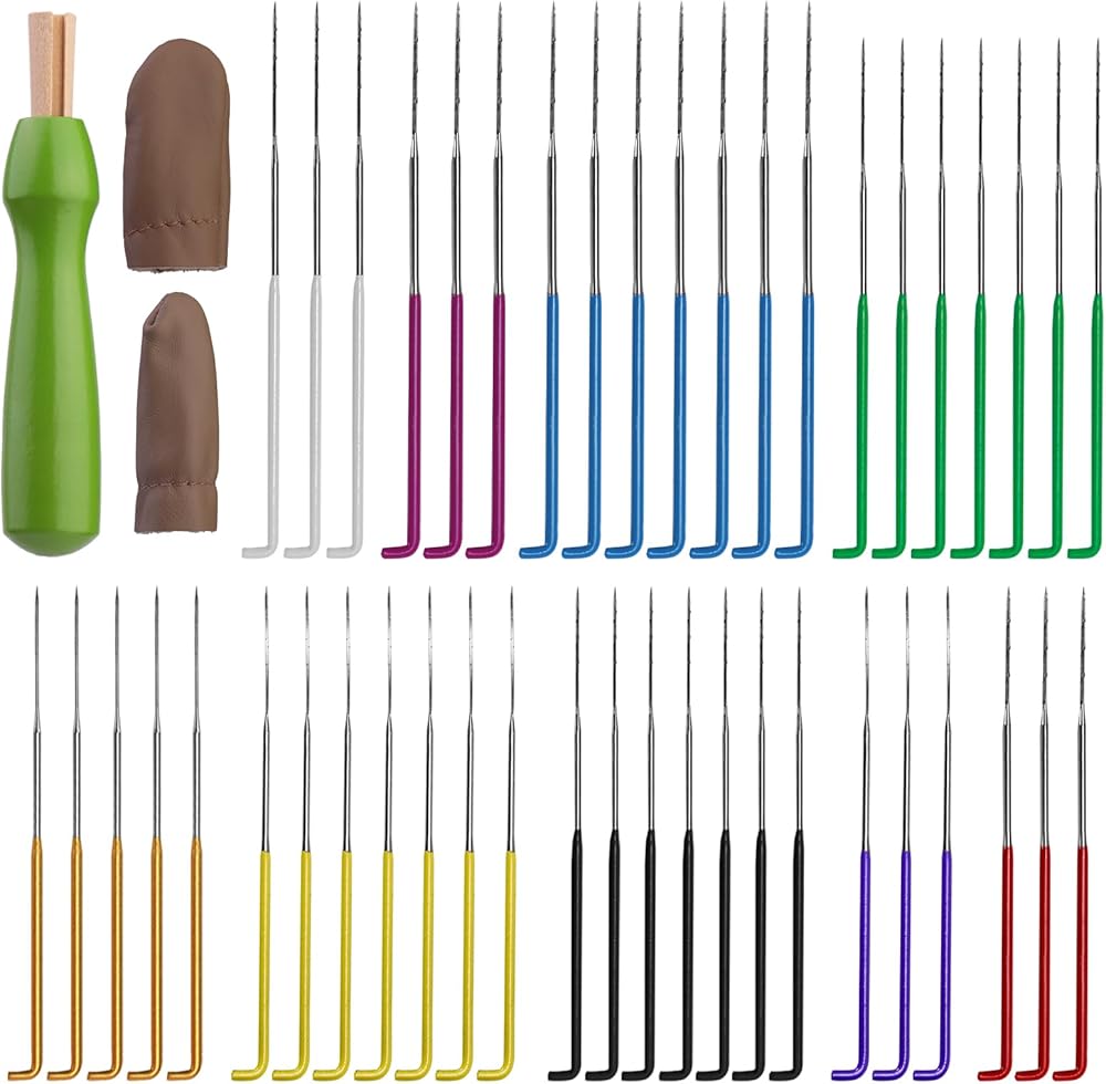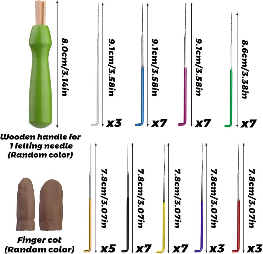 مجموعة إبرة التلبيد الكاملة: تحتوي على 45 إبرة لباد (13 قطعة قياس 36، 7 قطع قياس 38، 13 قطعة قياس 40، 7 قطع قياس 42، 5 قطع إبر تلبيد نجوم)، 1 مقبض إبرة واحد (لون عشوائي)، 1 زوج من مهد الأصابع (لون عشوائي).