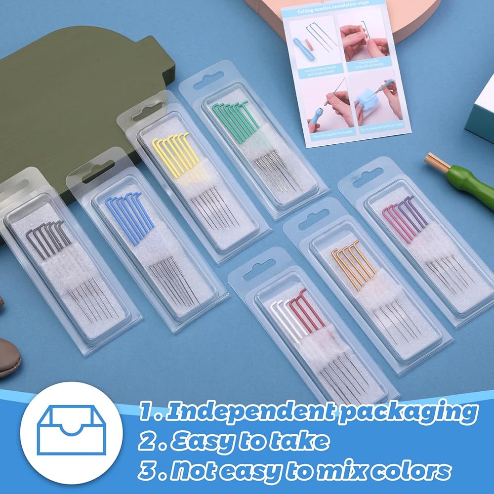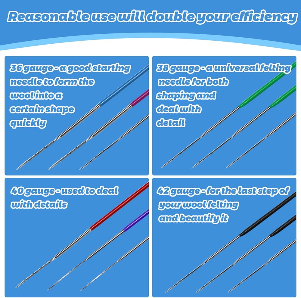 4 مقاسات من إبر التلبيد: مجموعة إبر اللباد تتضمن 4 أنواع من أحجام الإبر لتلبية احتياجاتك في صنع حيوانات صغيرة مختلفة وغيرها من الأعمال الحرفية. و4 أحجام من إبر اللباد معبأة بشكل منفصل ومصنفة، مريحة وتجنب فقدانها، حتى تتمكن من التعرف على الإبر التي تريد استخدامها في لمحة.