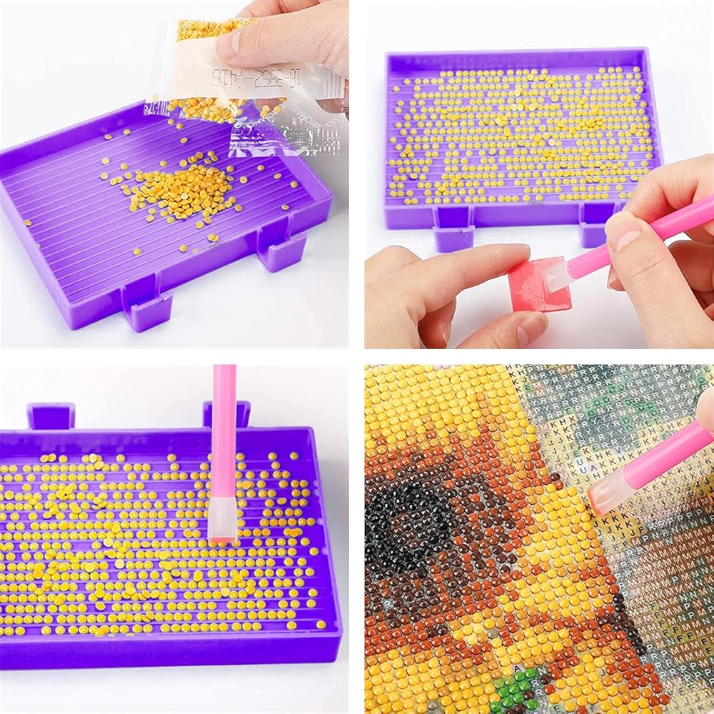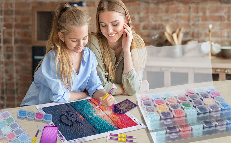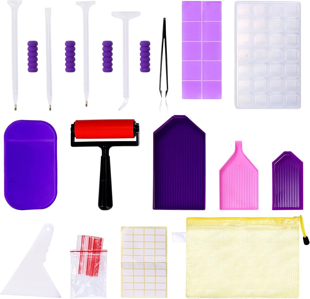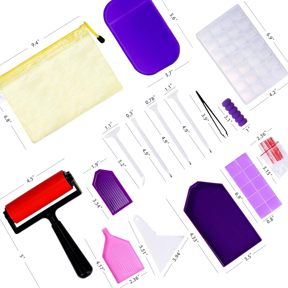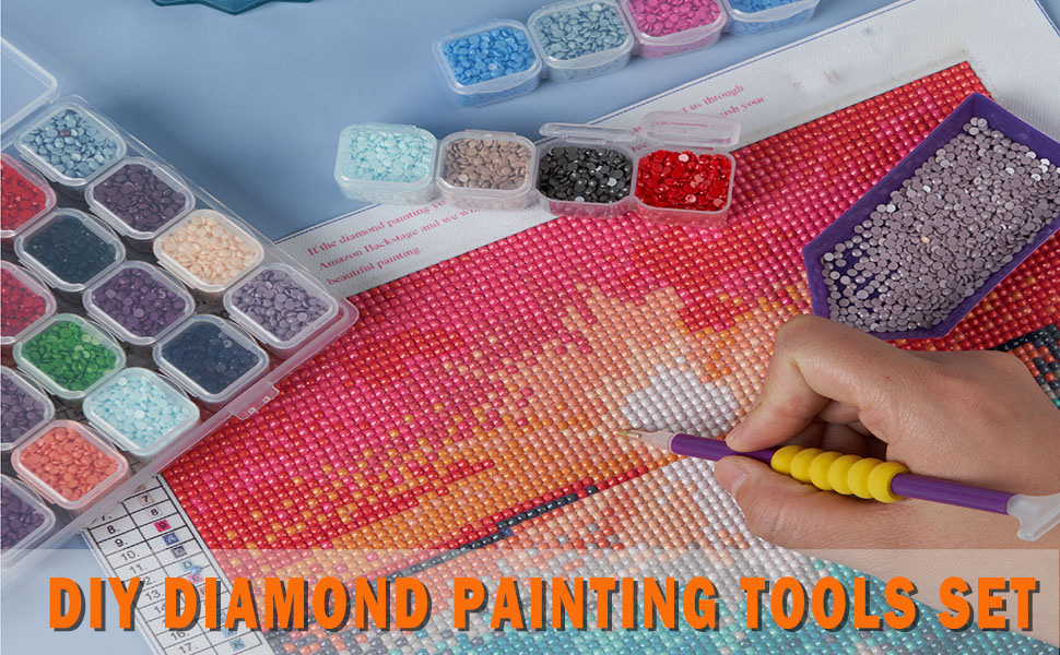 【Pro Tools Included】Our diamond art accessories and tools include diamond painting roller, diamond painting storage, diamond painting trays, diamond painting pens, diamond painting fix tool, stickers, anti-slip mat, wax, tweezers.