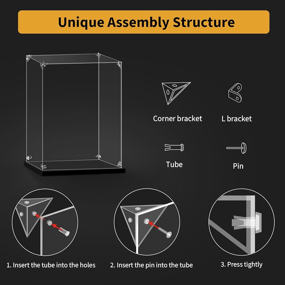【يرجى ملاحظة】توجد أغشية واقية على جانبي ألواح الأكريليك، والتي يجب إزالتها قبل تجميع صندوق العرض.