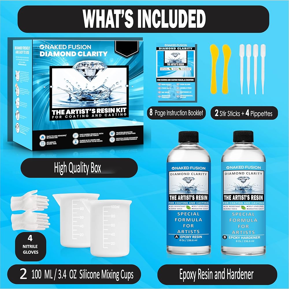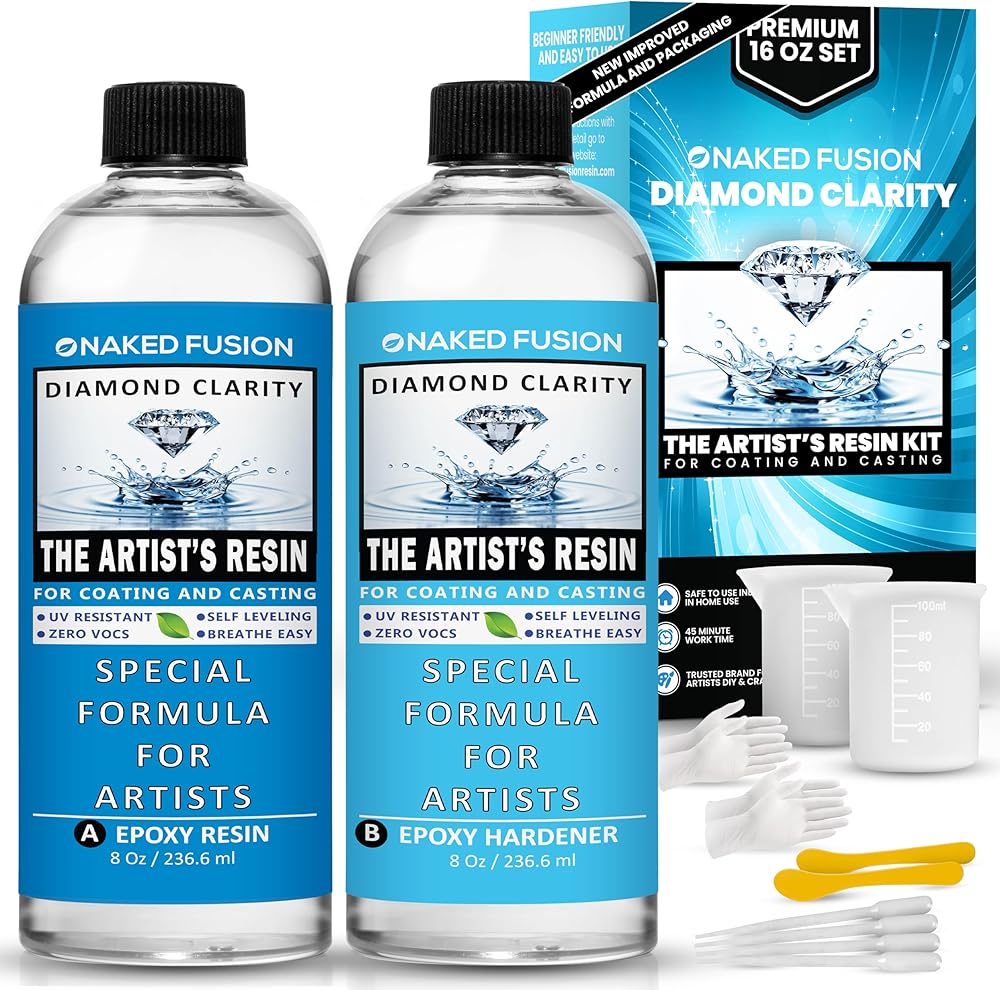NAKED FUSION إيبوكسي الراتنج الفن الراتنج واضح الفنان - صيغة محسنة جديدة - الفن، DIY، الصب، قوالب السيليكون، الحرف اليدوية، الزهور، كونترتوب، الخشب، طاولات النهر - آمنة للأغذية - غير سامة - مجموعة 16 أونصة