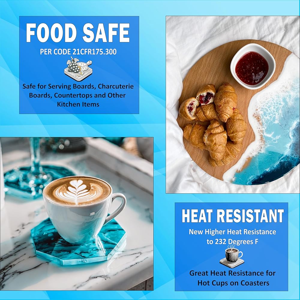 ممتاز للطلاء، والصب، والمعاطف الزجاجية على الأعمال الفنية، وفن الراتنج، واللوحات المصبوبة، ومجوهرات الراتنج، والأكواب، والمنضدة، وألواح التقطيع، وطاولات النهر ذات الحواف الحية، وإبداعات خشب الإيبوكسي، والصب المتسخ، والطلاء على صب الأكريليك، والتغليفات، والتماثيل، رائع لـ استخدمها مع قوالب السيليكون والمزيد! احصل على لون ووضوح وتأثيرات مذهلة عند إضافة اللون إلى الراتنج الخاص بك! رائع عند استخدامه مع أصباغ الميكا والمعاجين وصبغات الراتنج وأحبار الكحول والمزيد! نحن نقدم تعليمات مفصلة للاستخدامات المختلفة لمساعدتك في تحقيق أفضل النتائج لفنك أو مشروعك. وأوصت للاستخدام الداخلي فقط.