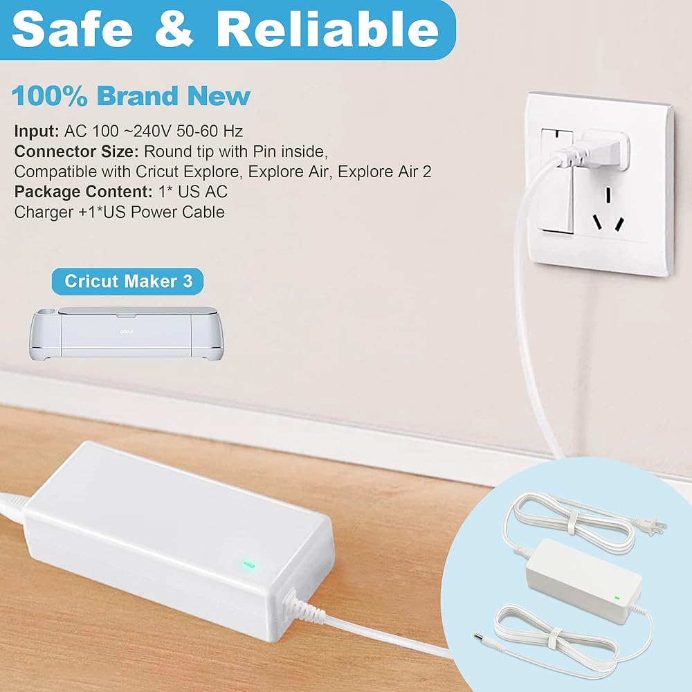 Note : The power adapter and cord is compatible with Cricut Maker3 (Other models of word cutters are not compatible).Please confirm whether the specifications and plug sizes are consistent before purchasing