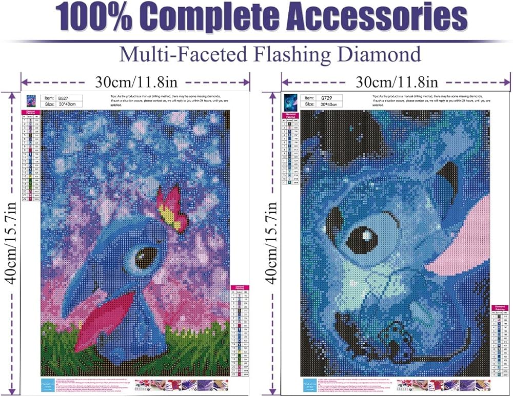 مجموعة الرسم الماسي من ريكنا ستيتش للبالغين، مجموعات فنية ماسية للاطفال، لوحة فنية بغرز من الماس هدية لديكور الحائط المنزلي 12 × 16 انش