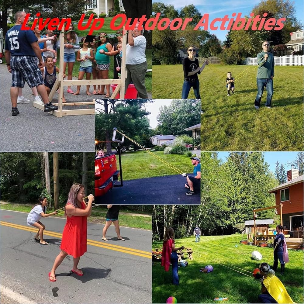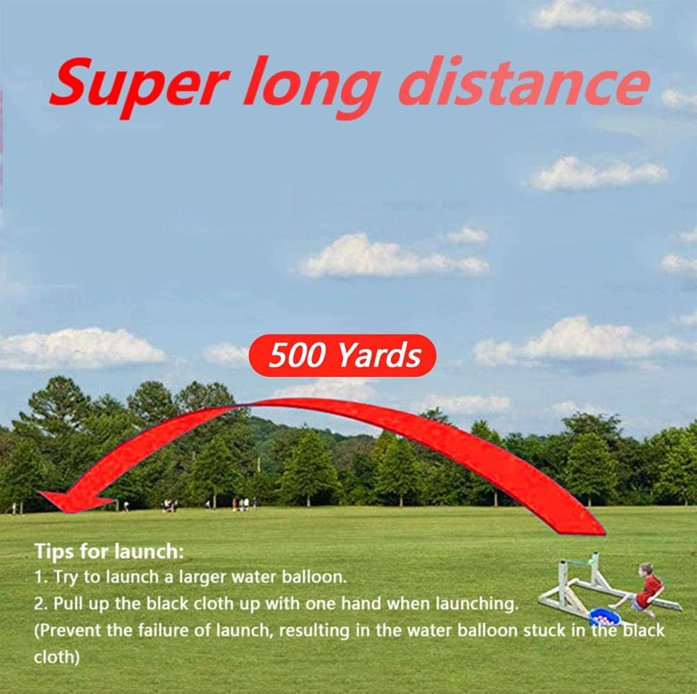 - 【مسافة وارتفاع فائقة】أطلق البالونات حتى 500 ياردة مع مقلاع 3 أشخاص، مما يخلق رذاذ هائل وإثارة.