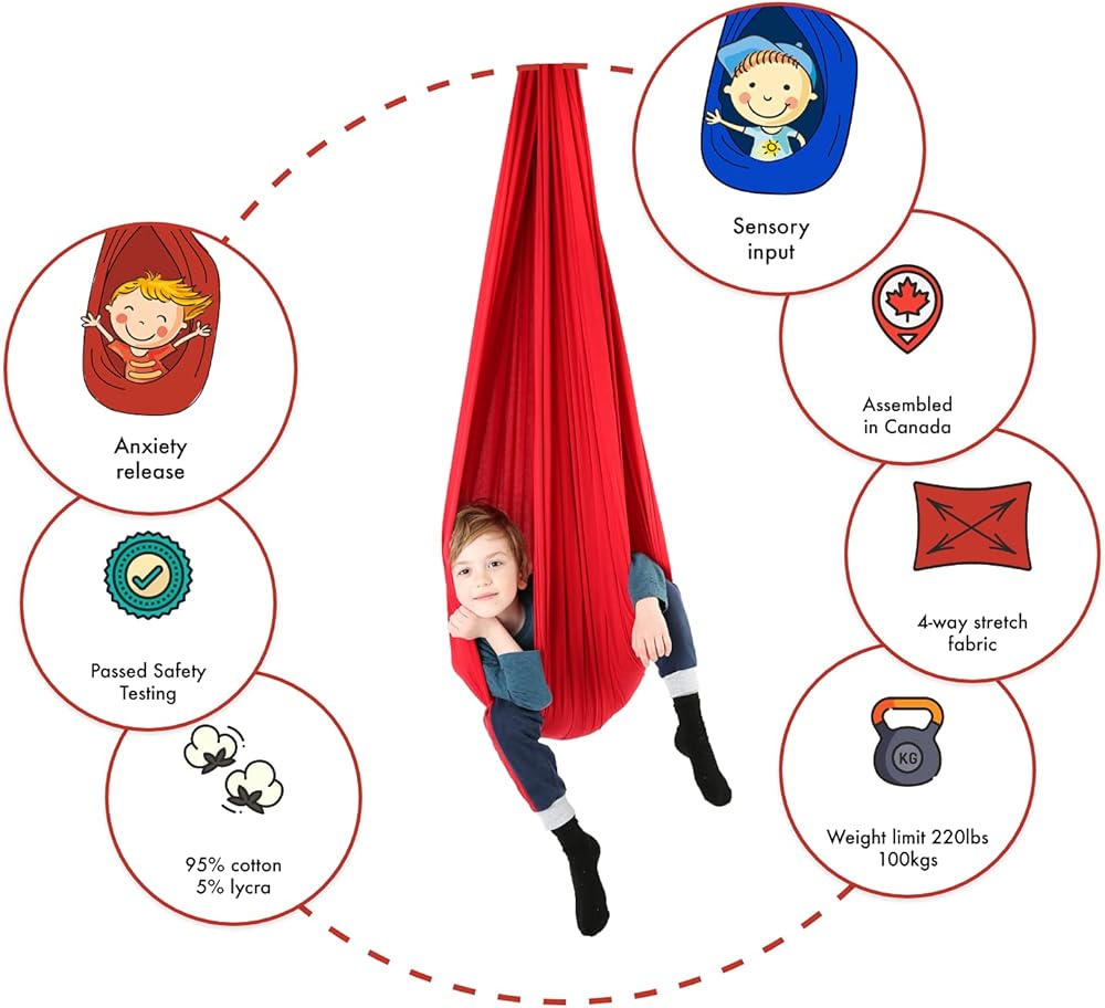 أرجوحة العلاج الحسي للمدخلات الهضمية للأشخاص الذين يعانون من اضطراب نقص الانتباه والتوحد.