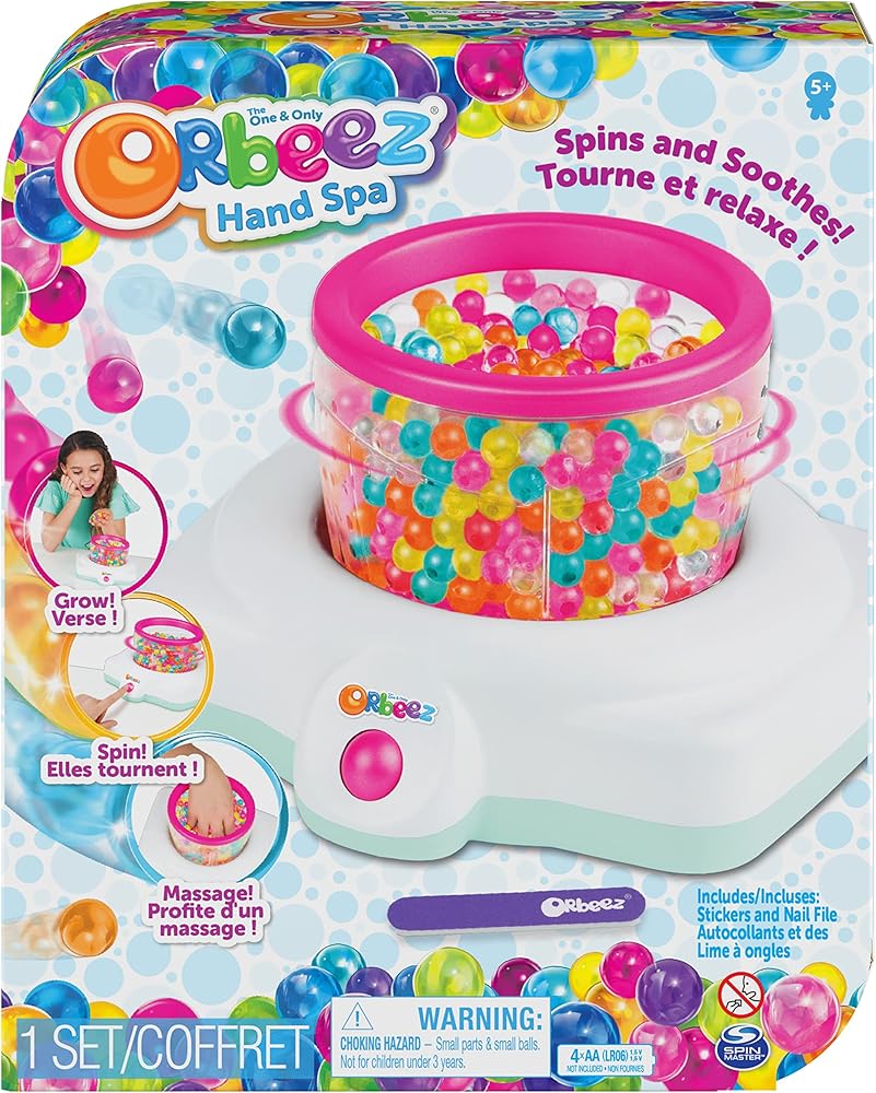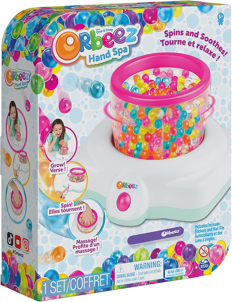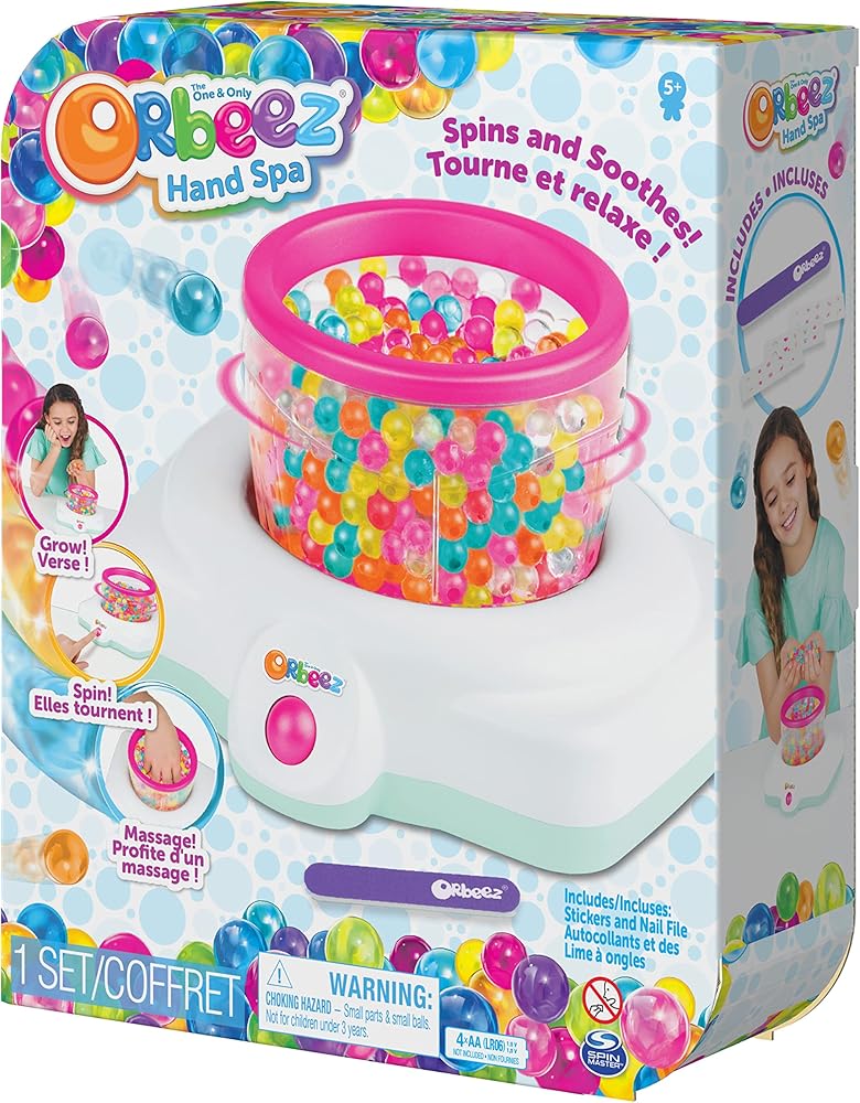 يعد Orbeez Hand Spa هدية رائعة للأطفال من سن 5 سنوات فما فوق. تتطلب بطاريات 4AA (غير متضمنة). تم اختبار سلامة أوربيز غير السامة وغير القابلة للبهتان لتلبية لوائح سلامة الألعاب الدولية.