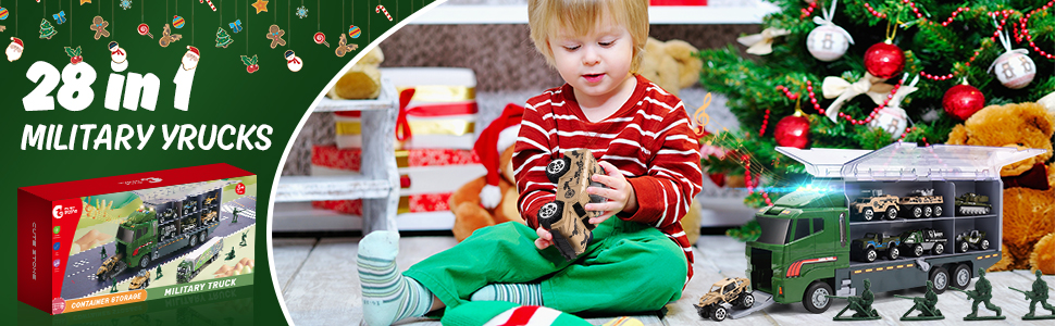 • مجموعة ألعاب شاحنة عسكرية كاملة: تتضمن مجموعة الشاحنات العسكرية 10 شاحنات صغيرة، مثل الطائرات المروحية، والدبابات، والسيارات المدرعة، والشاحنات الطويلة للحاوية والمركبات المضادة للهواء، وشاحنات التقاط وغيرها. كما أنها تأتي مع 16 جندي عسكري. حجم الشاحنة الكبيرة 35.56 × 15.24 × 8.89 سم. حجم الشاحنة الصغيرة 7.8 × 3.0 × 3.8 سم.