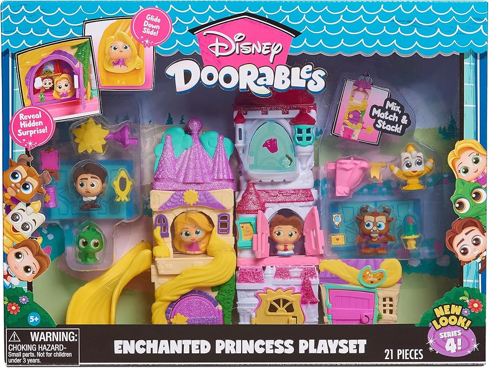 توجد مفاجأة A'Doorable ضمن مجموعة لعب Disney Doorables Enchanted Princess. تأتي مجموعة لعب Disney Doorables Enchanted Princess مع ستة شخصيات مفاجئة، مستوحاة من عالم الجميلة والوحش وTangled. استكشف عالم أميرات ديزني من خلال المغامرة في الجناح الغربي لقلعة الوحش مع بيل وساعد رابونزيل في العثور على طريقها للخروج من برجها. تسمح مجموعة اللعب هذه بسرد القصص واللعب الخيالي الذي لا نهاية له! تتضمن مجموعة لعب واحدة وستة شخصيات مفاجئة. تأتي مجموعة اللعب الرائعة هذه مع قطعة لعب معرض فني قابلة للتركيب وست قطع إكسسوارات، بما في ذلك وردة سحرية وزجاج ذو مظهر سحري ومذكرات بيل وحامل فني ومرآة وفانوس. يبلغ طول كل شخصية حوالي 1.5 سم وتتميز بتفاصيل أنيقة وعيون لامعة مميزة. يمكن تجميع كل مجموعة لعب أو تجميعها معًا بسهولة حتى يتمكن الأطفال من إنشاء عالم Disney Doorables المخصص لهم. للأعمار من 5 سنوات فما فوق