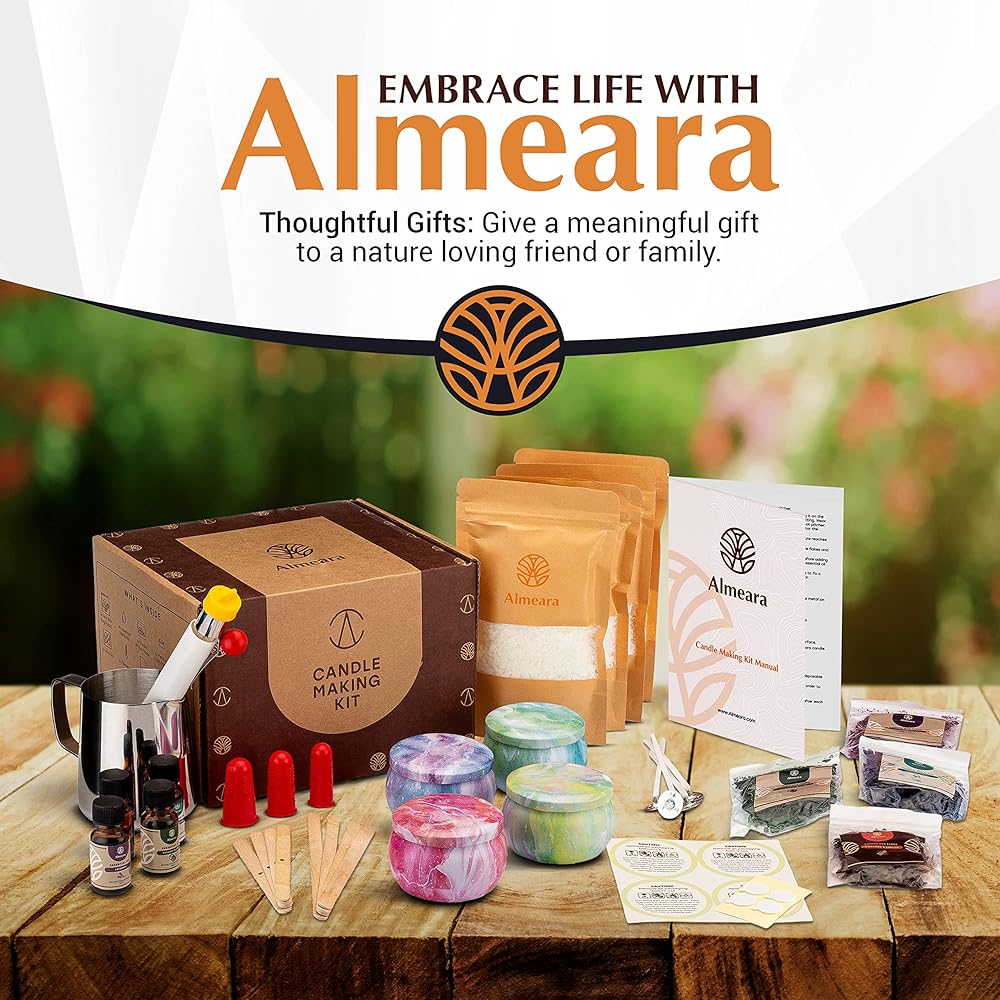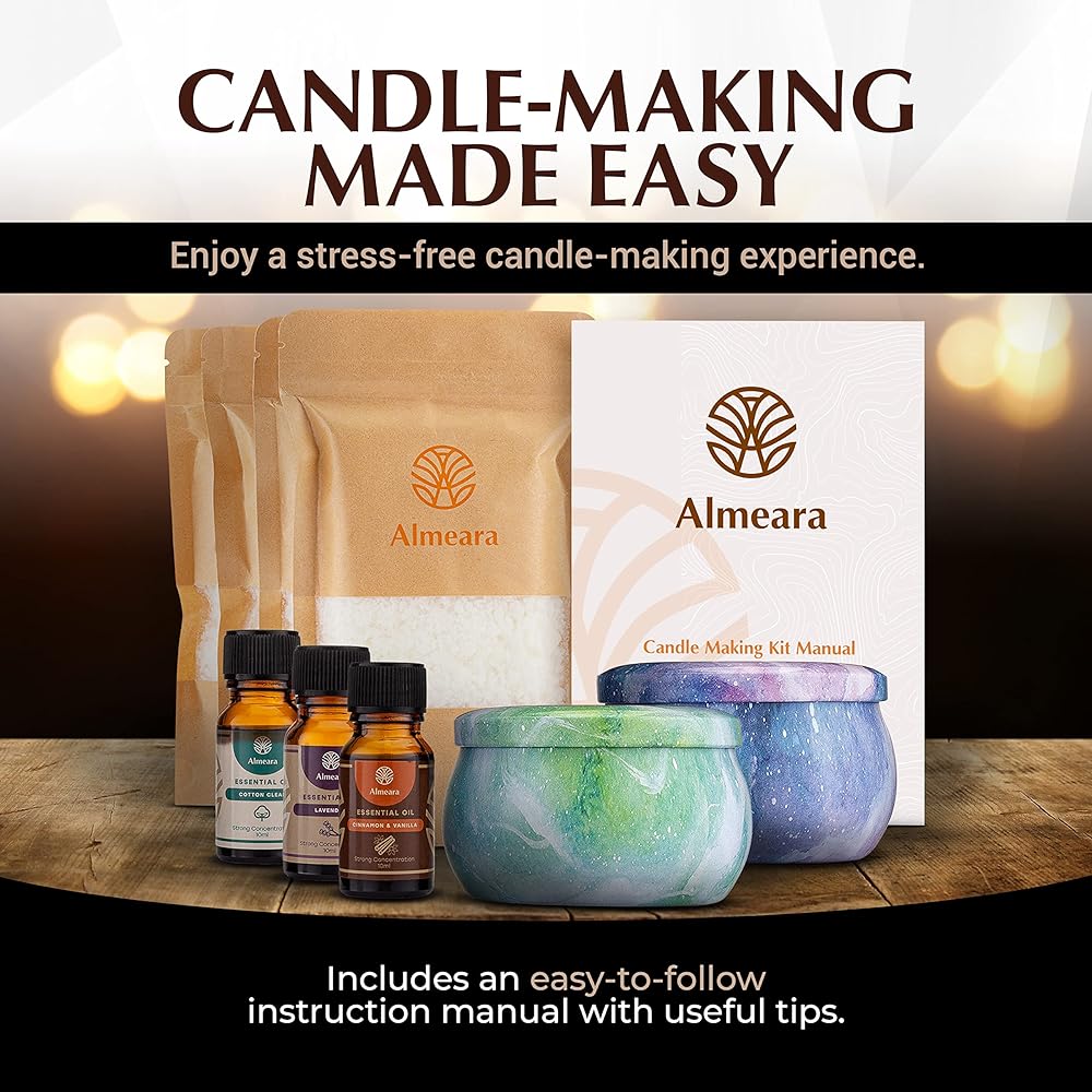 Easy DIY candles: The Almeara candle making kit includes clear step-by-step instructions on how to make your own soy candles easily. Enjoy a hassle-free experience with our high quality, yet beginner-friendly soy candle wax for candle making.