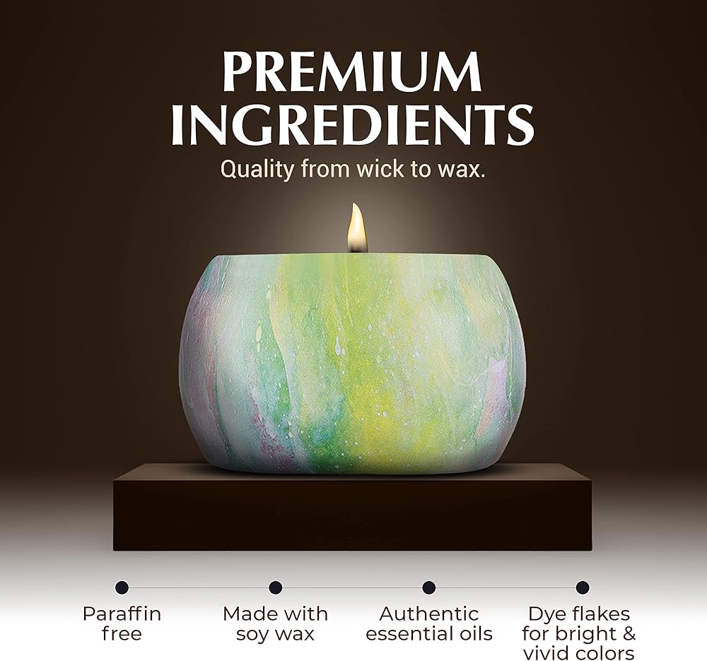 All premium quality - Every component in our candle kit is of the highest quality - from the paraffin-free soy wax candle that produces a cleaner burn to authentic essential oil for a more potent and lasting fragrance.