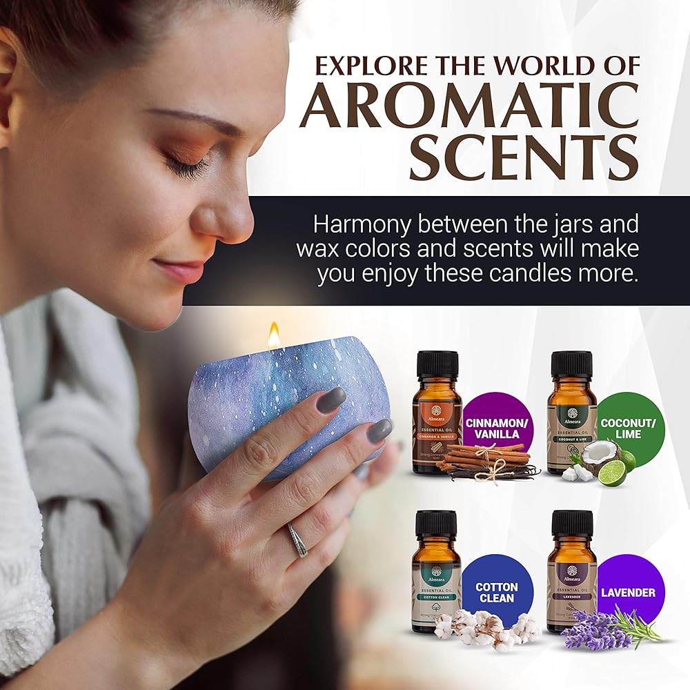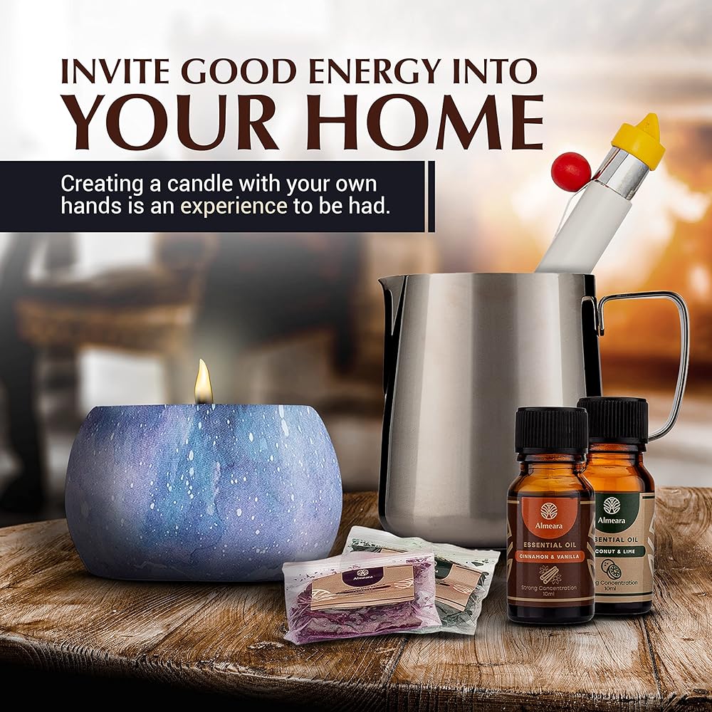 مجموعة صنع الشموع من ألميرا - لوازم صنع شموع شمع الصويا بنفسك - مجموعة صنع الشموع المعطرة للفنون والحرف اليدوية مع الزيوت العطرية، إبريق من الفولاذ المقاوم للصدأ، تعليمات - غير سامة وخالية من البارافين