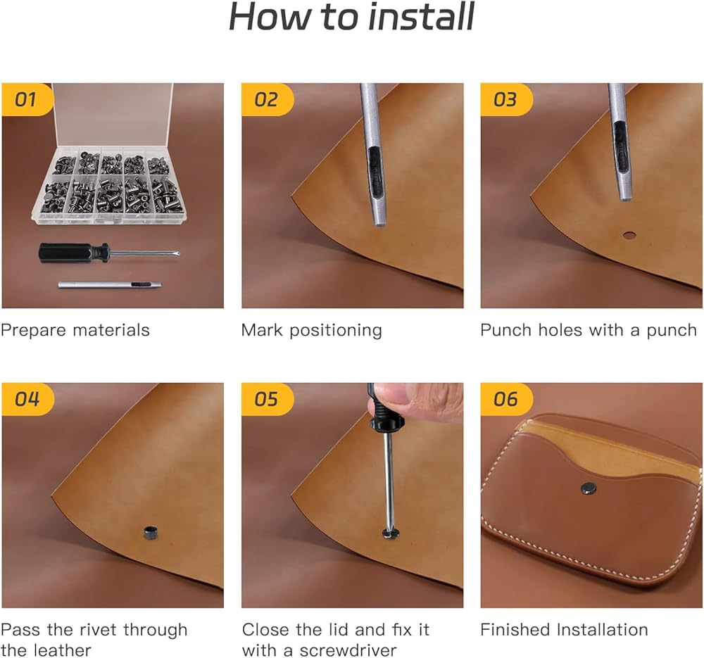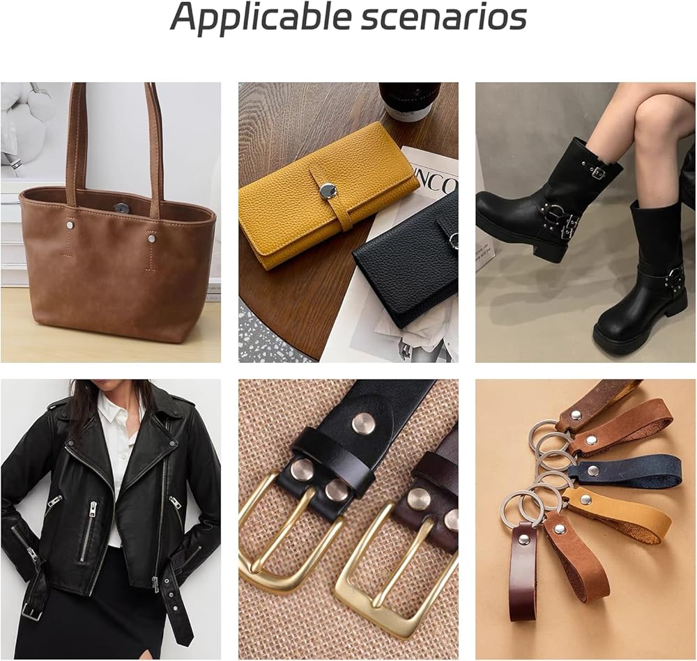 الاستخدامات: إنها مناسبة بشكل خاص لربط الديكورات الجلدية المصنوعة يدويًا، والمستندات، والكتب، وألبومات الصور، والتقويمات، وسلاسل المفاتيح، وألبومات الصور، والأحذية، وأطواق الحيوانات الأليفة، والحقائب الجلدية، وما إلى ذلك. ويمكن أيضًا تزيينها بنفسك على عناصر مختلفة، وهي جميل جدًا.
