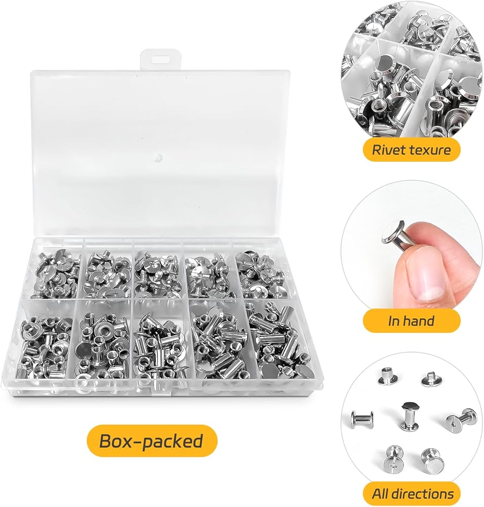 تعتبر هذه المسامير المصنوعة من الجلد مثالية لإصلاح حقائب اليد الجلدية والسترات الجلدية والأحزمة الجلدية والمحافظ الجلدية أو لإضافة زخرفة إلى مصنوعاتك الجلدية. مسامير شيكاغو هذه مصنوعة من الفولاذ الكربوني عالي الجودة، وطلاء نيكل فضي متطور، ومقاوم للصدأ، تحسين مقاومة التآكل والتأثير الزخرفي بشكل فعال. المسامير قوية ومتينة، وسهلة الربط، ولمسة نهائية ممتازة. ذلك هو افضل خيار لكم.