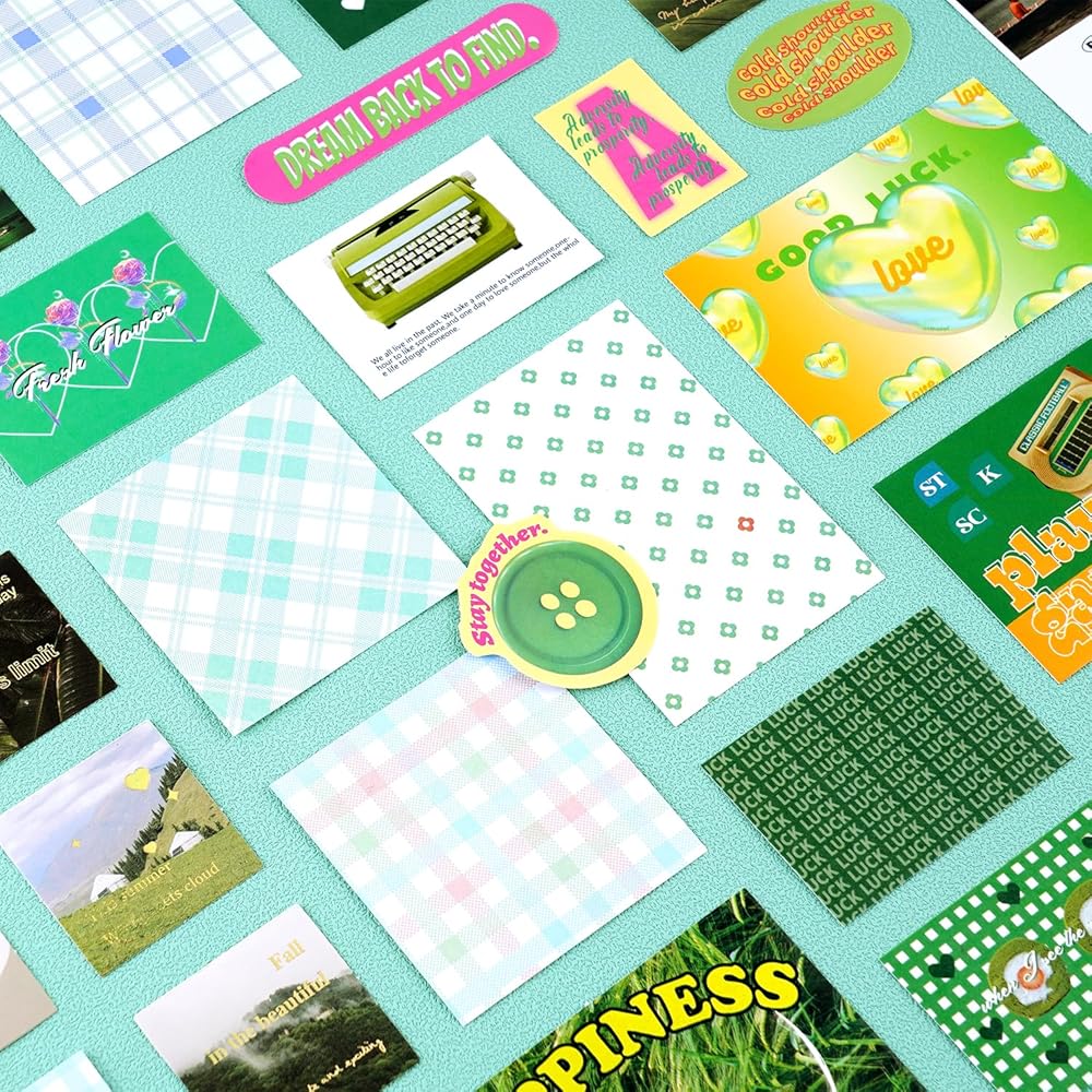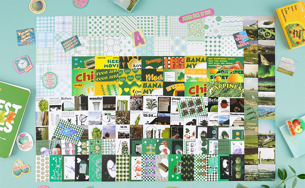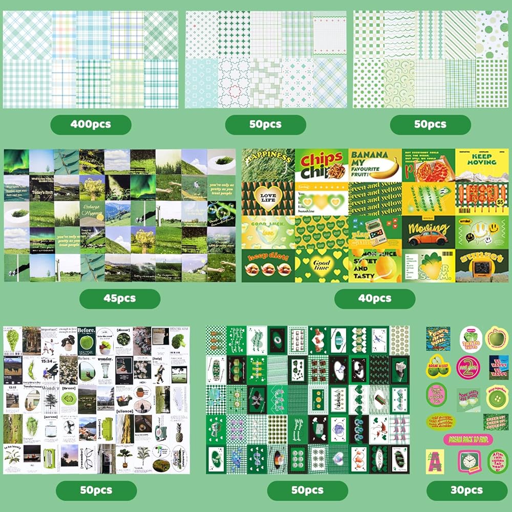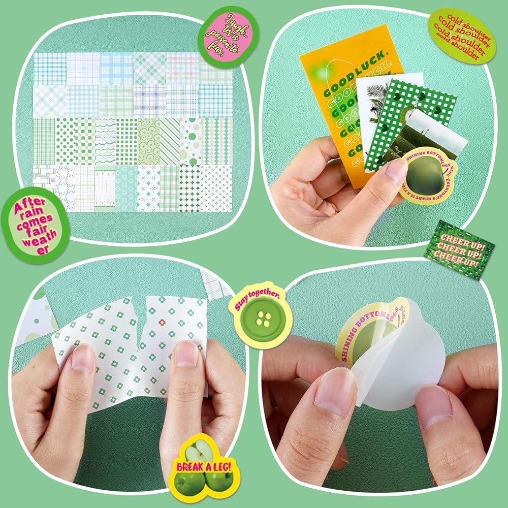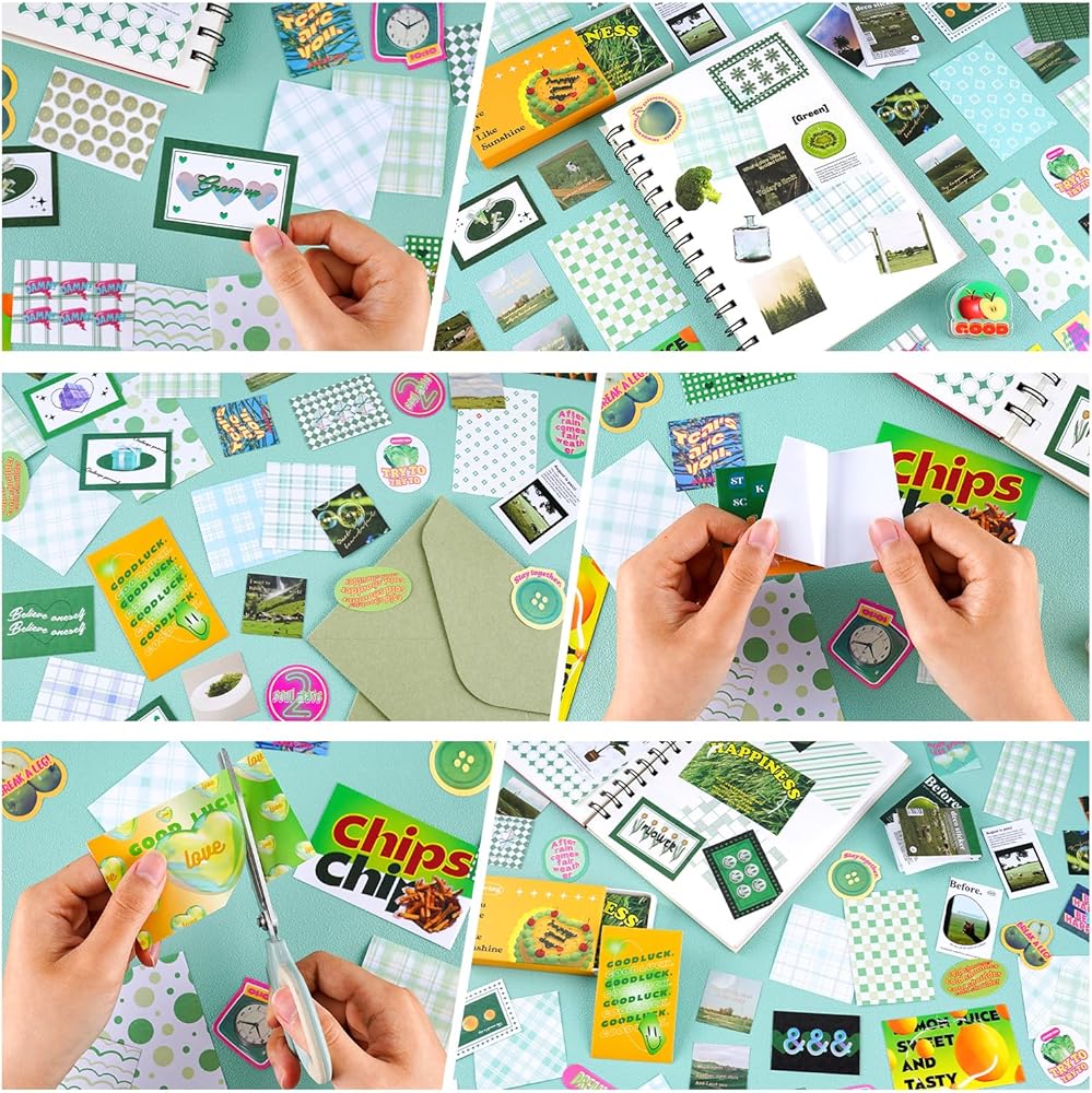 715 قطعة مجموعة سجل القصاصات الرجعية الخضراء القصاصات الورقية ملصقات جمالية سكرابوكينغ رصاصة غير المرغوب فيها لوازم اليومية الحرفية هدية عدة لطيف مخطط ملصق Kawaii الأزهار شبكة ملاحظة ورقة للأطفال بنين بنات