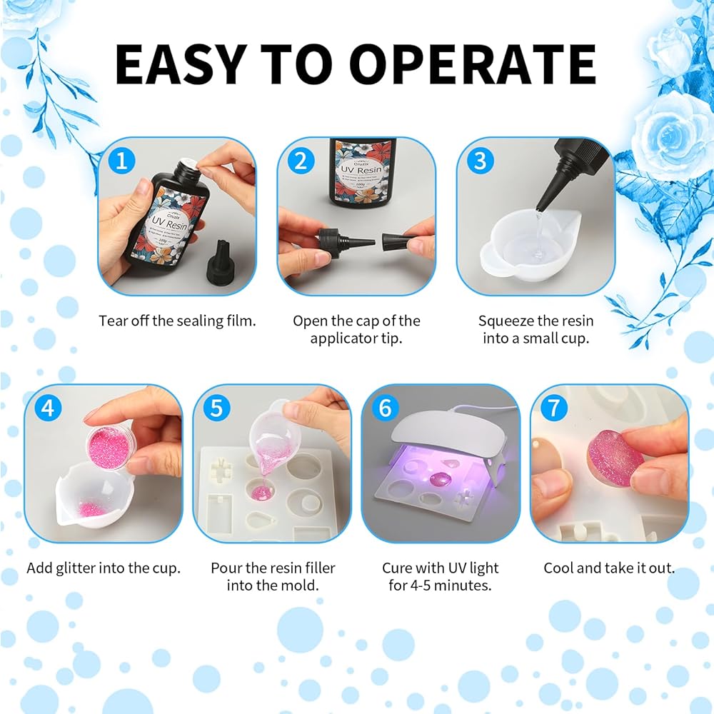 تعتبر المجموعة الكاملة لمجموعات وقوالب الراتنج مثالية للحرف الفنية وسلاسل المفاتيح والمجوهرات (مثل الأقراط والأساور والمعلقات والقلائد) والأكواب وغراء المجوهرات وغراء الزجاج والأكواب وديكور المنزل أو المكتب ولوحات الراتنج والصب والطلاء وغيرها. أكثر.