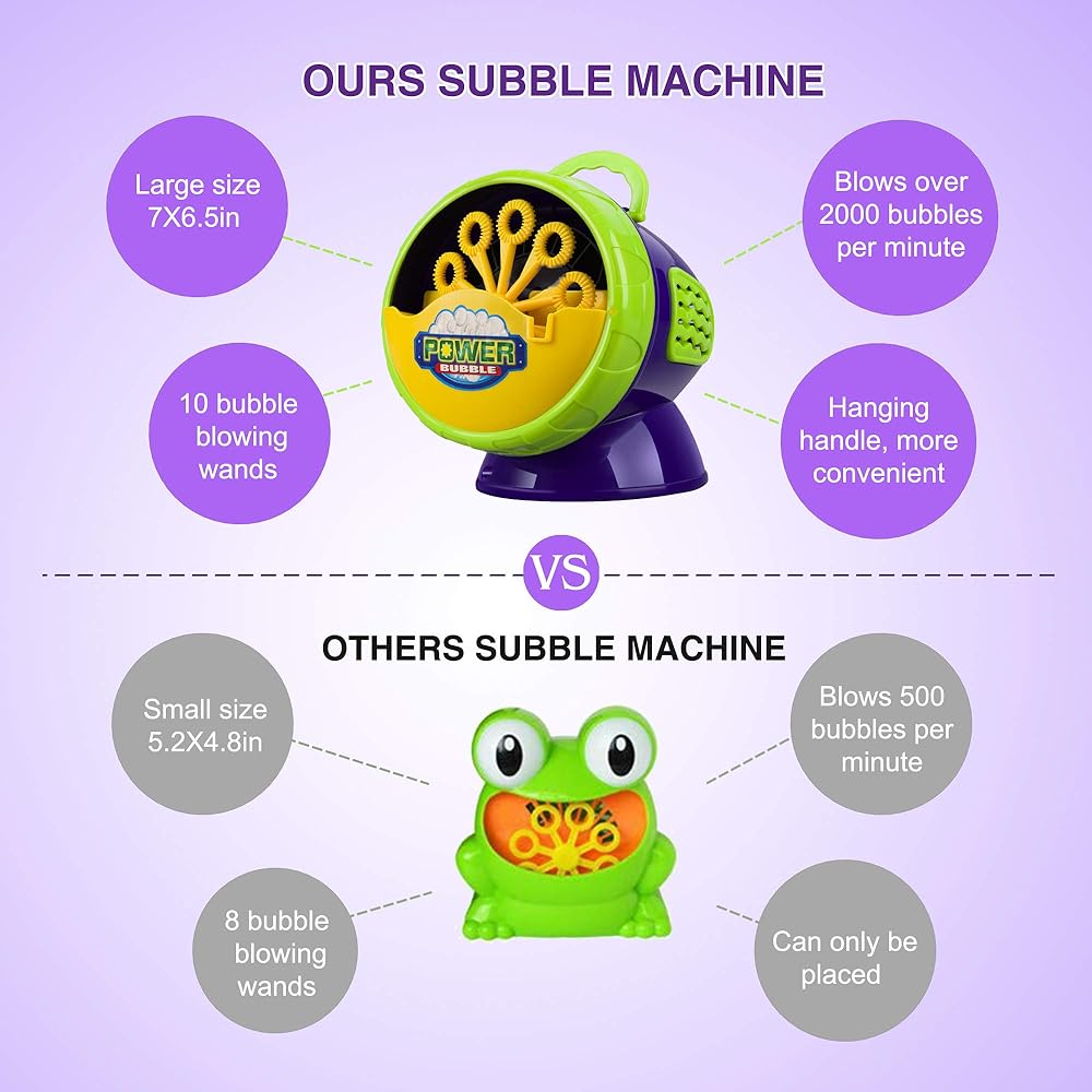 محرك قوي مدمج و10 عصي نفخ الفقاعات، يمكن أن تصب أكثر من 2200 فقاعة في الدقيقة، يمكن استخدامها في الداخل أو الخارج. احتفل بحفلات أعياد الميلاد ومواعيد اللعب وحفلات الزفاف وحفلات استقبال المولود وغيرها من المناسبات.