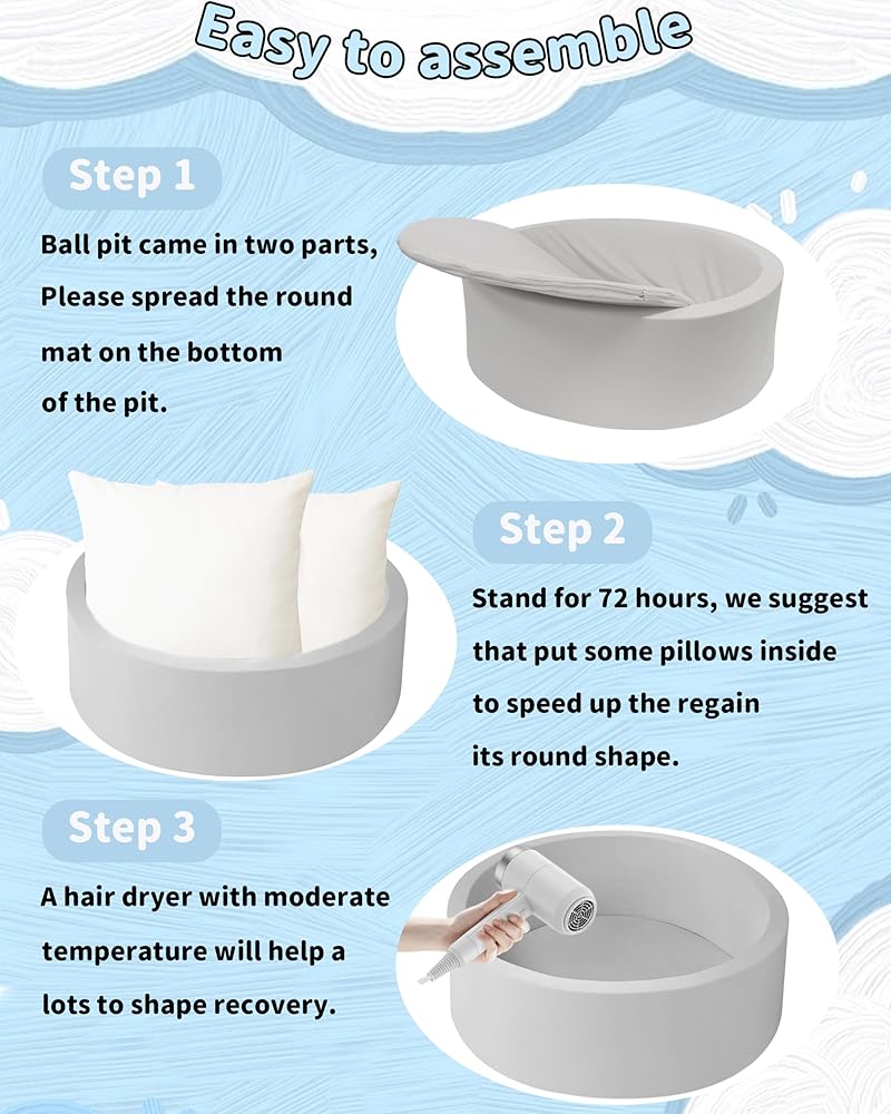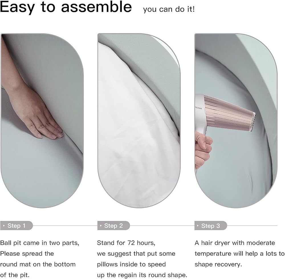 • [Shape Recoverability] The MEOGETY kids ball pits may distort the shape on arrival because of it's packaged & transported compacted . Allow the soft play ball pit borders to regain shape by applying constant pressure (using quilts and/or pillows) or using a hairdryer (cold air) at the creases.