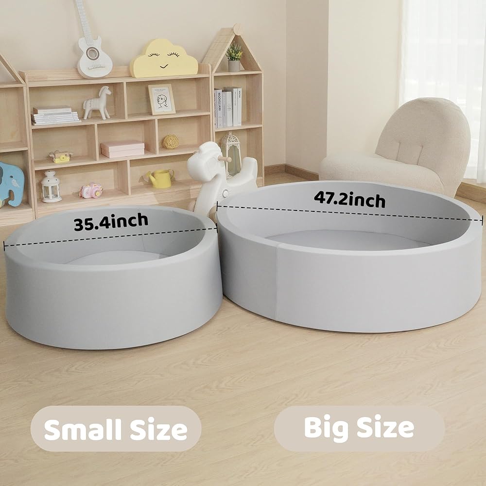 • [Safety Baby Playroom] Standard Dimensions: 35.4 inch x 11.8 inch x 1.96 inch ( diameter x side height x wall thickness ) let the babies and dogs or cats play happily and safely inside.Babies love using this foam ball pit as a cozy playpen too even without balls.