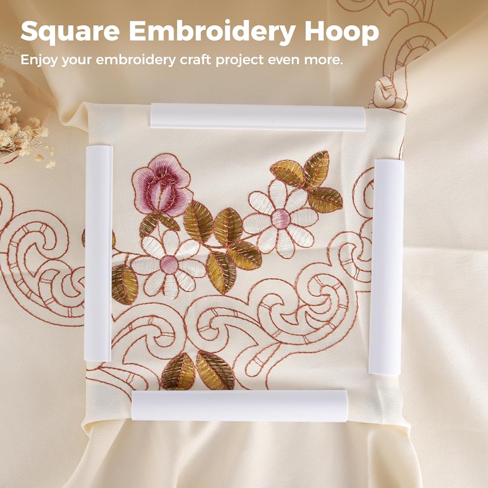 Sturdy & Durable Plastic Material Each square embroidered plastic clip frame is assembled by 4 round tubes, 4 semi-circle clips, and 4 adapters. All parts are made of quality plastic with high hardness and toughness, sturdy and durable, which have a long service life.