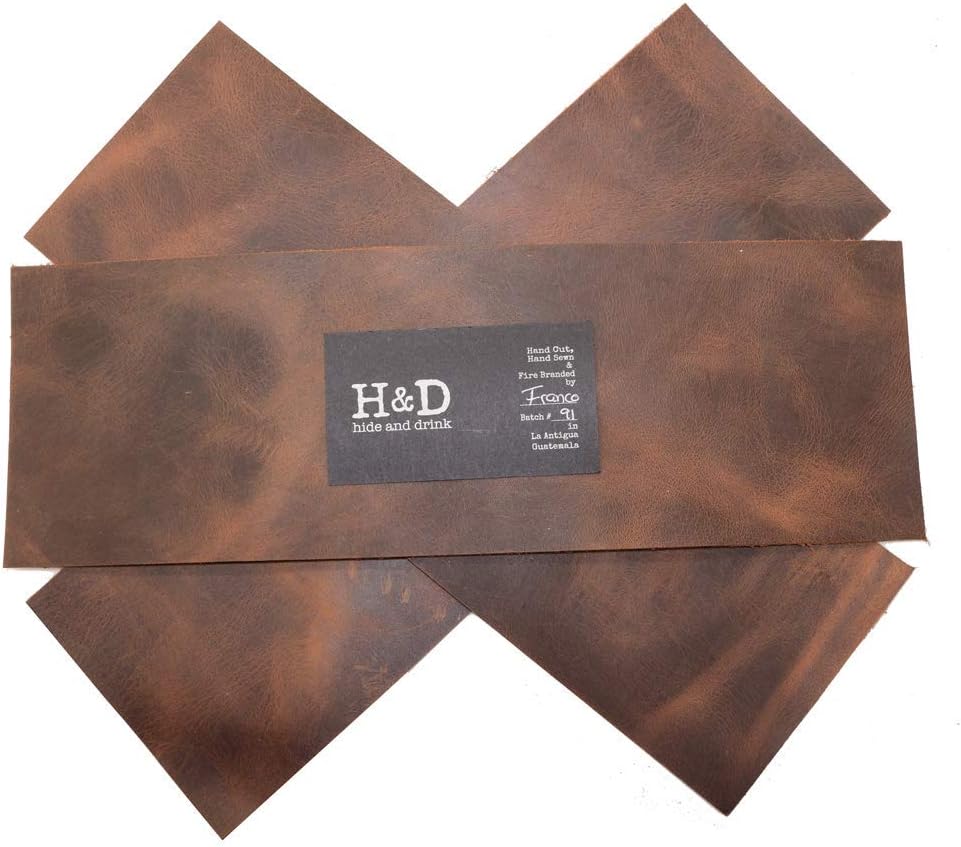 قصاصات جلدية مقطوعة يدويًا: يتم قطع كل قطعة من منتجات Hide & Drink يدويًا. يقدم لنا الحرفيون وعمال الجلود في باستوريس بغواتيمالا أفضل أعمالهم. نحن نصنع منتجات جلدية ومنتجات جلدية عالية الجودة، لذلك لن تحصل على أقل من الأفضل. جلدنا متين، ويتميز بلون موحد ومثالي لأي مهمة أو مشروع DIY.