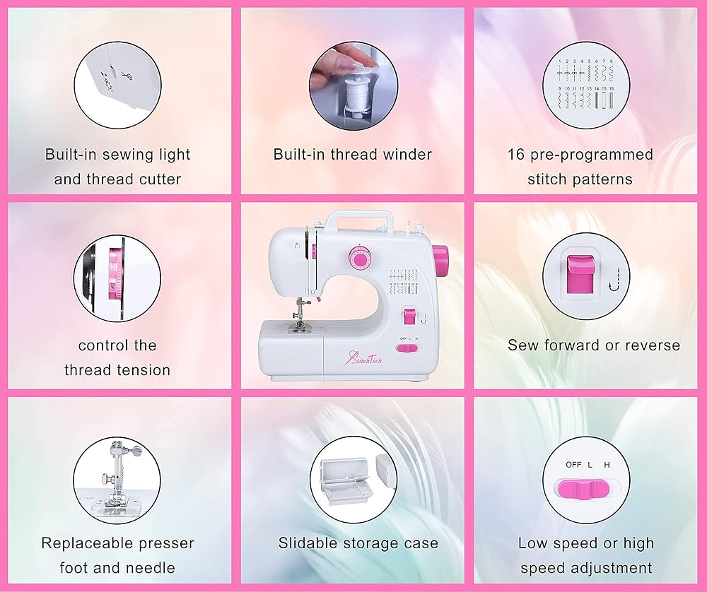 【ستيتش تيك 508】ماكينة الخياطة المنزلية متعددة الوظائف سهلة الاستخدام لصانعي الصرف المبتدئين والمتقدمين على حد سواء. يمكنك إنشاء مجموعة متنوعة من المشروعات الممتعة معها.