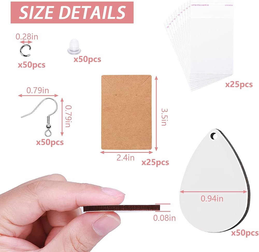 مجموعة القرط من 250 قطعة - تتضمن مجموعة الفراغات المتسامي 50 قطعة من الأقراط الفارغة بالتسامي، و50 قطعة من حلقات الوثب، و50 قطعة من الأقراط البلاستيكية الشفافة، و25 قطعة من بطاقات القرط و25 قطعة أكياس بلاستيكية. مجموعة كاملة يمكن أن تلبي احتياجاتك المتنوعة لصنع المجوهرات الخاصة بك، مشاريع التسامي، والحرف اليدوية DIY