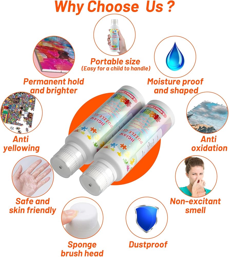 [خدمة موثوقة لما بعد البيع] إذا كان لديك أي مشاكل مع الغراء الشفاف للألغاز، فلا تتردد في الاتصال بنا، ونحن نعدك بحل المشكلة في غضون 24 ساعة. لا تأكل هذا المنتج. يرجى إحكام الغطاء بعد الاستخدام، ومن الأفضل أن تبطن بعض الورق في الأسفل عند تطبيق الأحجية.