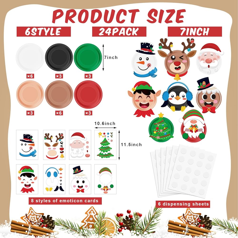 مجموعة الأعمال اليدوية المضحكة لعيد الميلاد المجيد: افعل شيئًا جديدًا في عيد الميلاد هذا من خلال الانغماس في مجموعة أطباق عيد الميلاد الخاصة بنا، إجمالي 24 مجموعة من مجموعات لوحات عيد الميلاد الفنية، 24 قطعة من الأطباق الورقية مقاس 7 بوصات في 6 ألوان مختلفة، 24 قطعة من الورق المقوى بأنماط عيد الميلاد الملونة في 8 أنماط مختلفة، 120 قطعة من نقاط الصمغ في 6 أوراق، إنها لعبة تعليمية مذهلة، ألعاب تعليمية مبكرة للأولاد والبنات في مرحلة ما قبل المدرسة، سيحبون التحول إلى لوازم حفلات عيد الميلاد المخصصة لهم