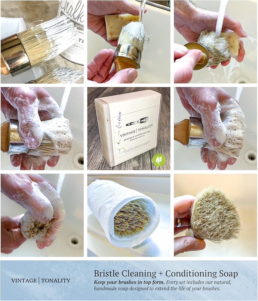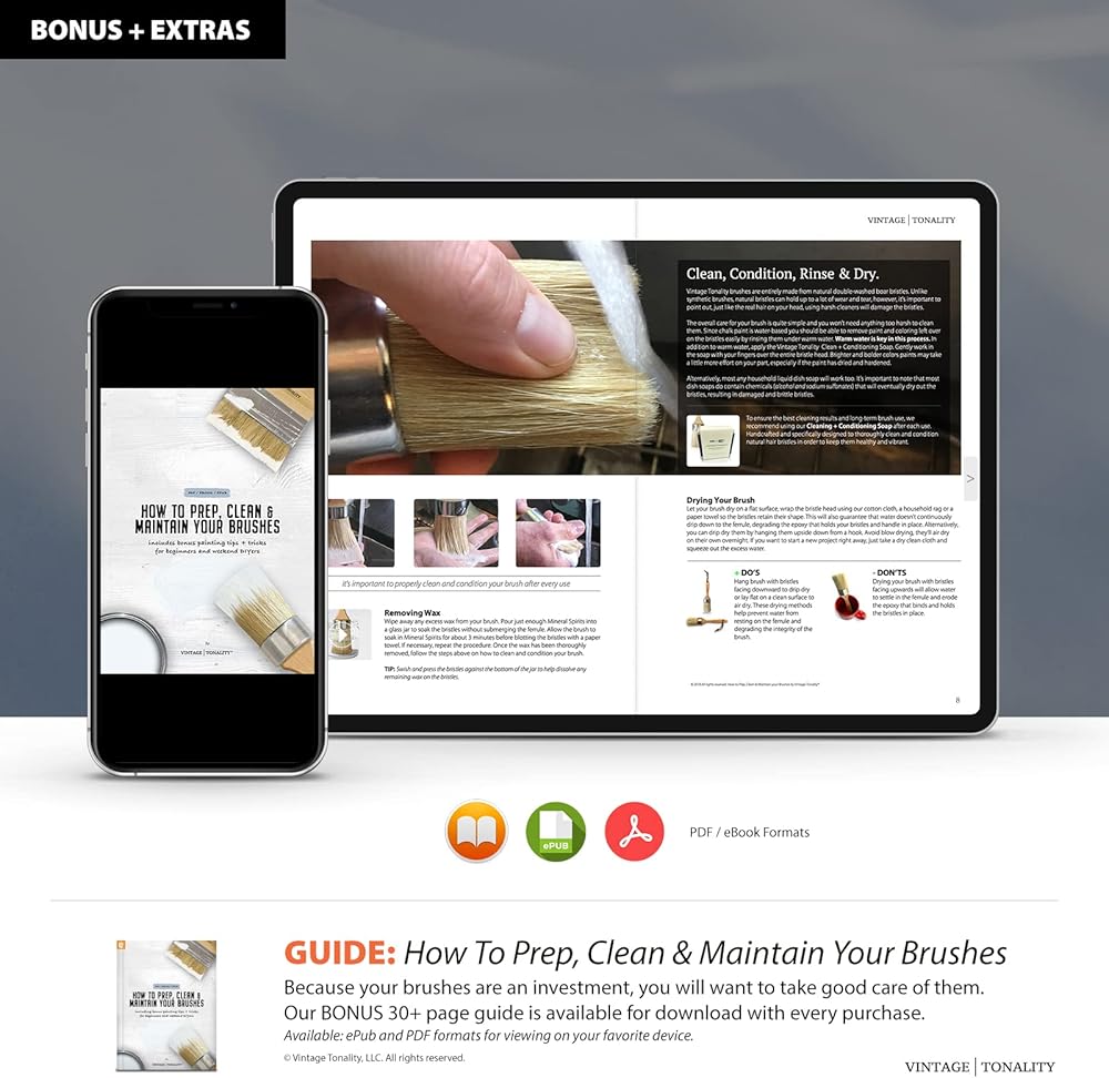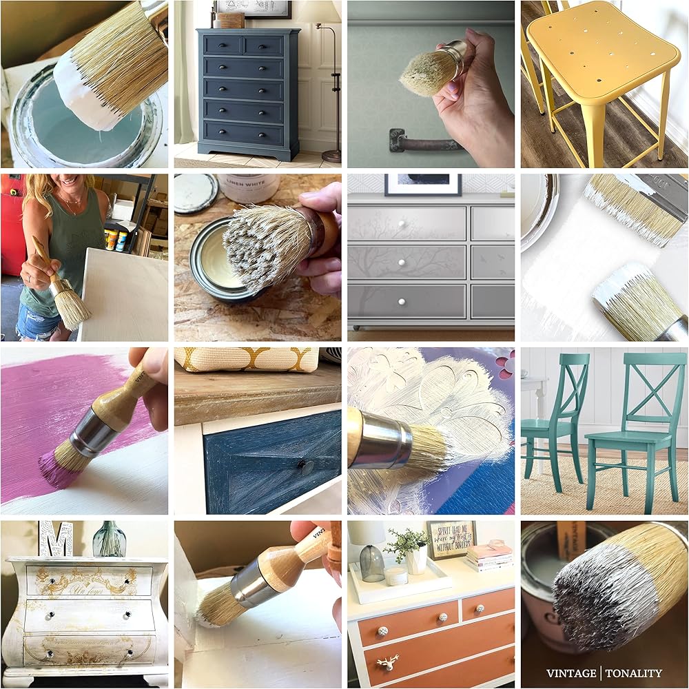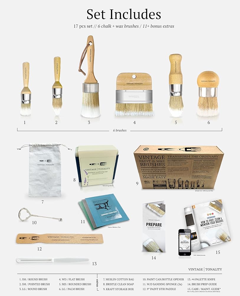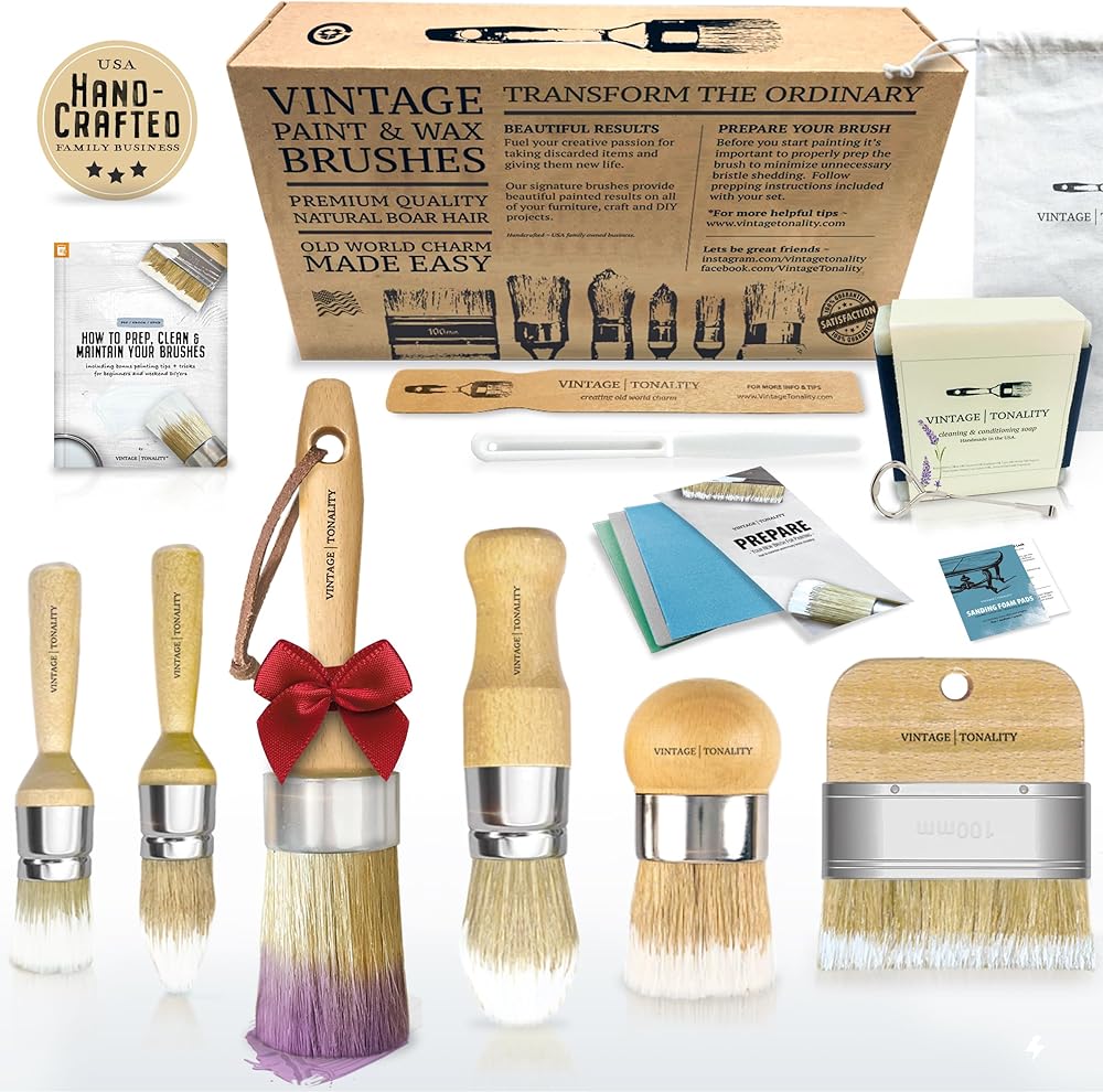 مجموعة فرشاة طلاء الشمع بالطباشير العتيقة | طلاء الأثاث أو تشميعه | 6 فرش + 11 أداة وإضافات | مشاريع إعادة تصميم ديكور المنزل الكبيرة والصغيرة | شعيرات طبيعية كثيفة