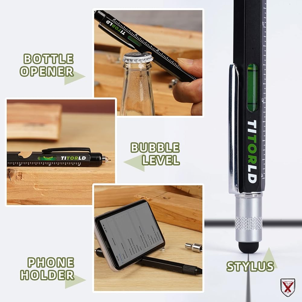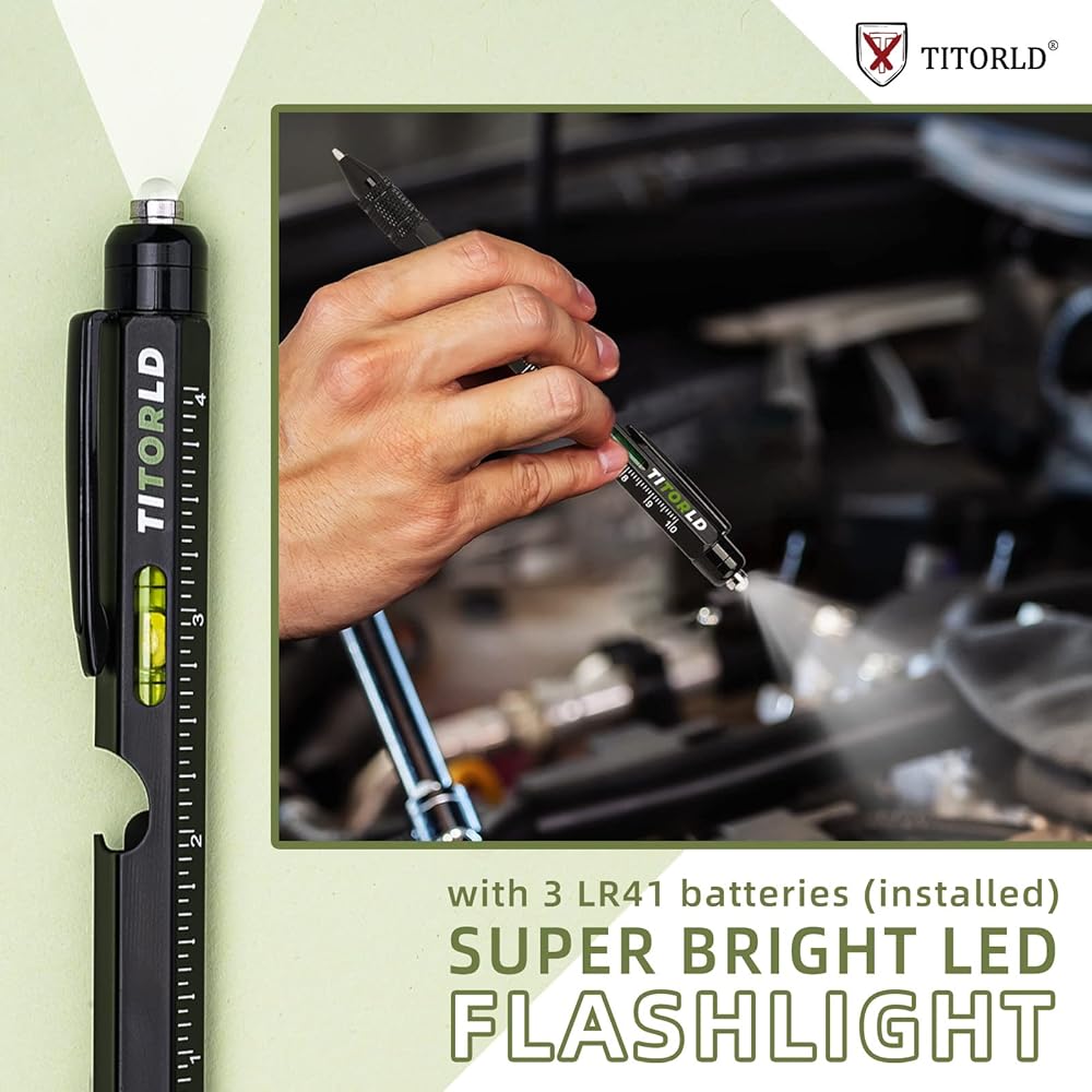 【ممتاز لك وله 】-يتيح لك قلم الأدوات 10 في 1 هذا الاستمتاع بأفضل أداة تقنية في أي مكان وفي أي وقت. إنها تمثل مفاجأة رائعة لآبائك، وصديقك، وجدك، وأخيك، والمهندس، وعمال الخشب الذين يحبون تحسين المنزل بنفسك. تخيل كم هو مناسب أن يكون لديك قلم مزود بأضواء لتزويدك بالإضاءة أثناء العمل. ضع قلمًا متعدد الأدوات في المكتب أو المنزل أو في السيارة. لأنك لا تعرف أبدًا متى تحتاج إلى إصلاح عنصر صغير أو ترك ملاحظة لاحقة.