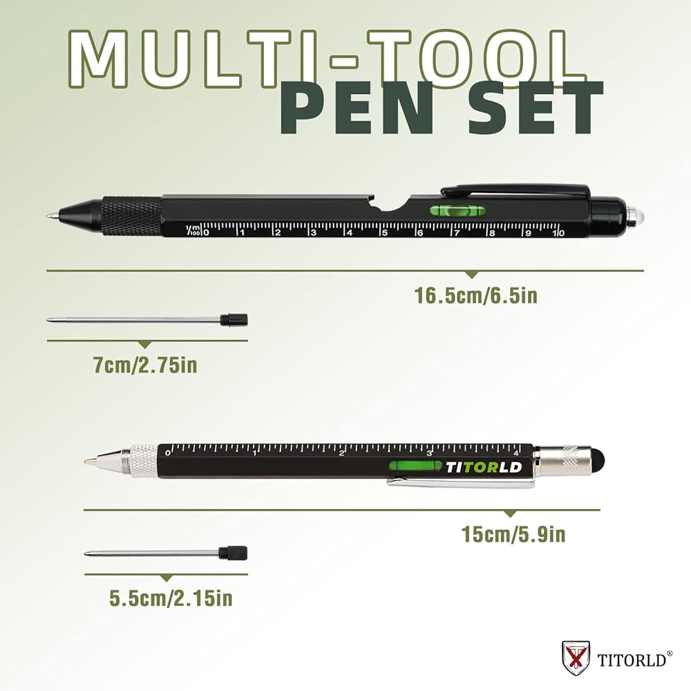 【قلم متعدد الأدوات 10 في 1】- مجموعة أقلام متعددة الأدوات تأتي مع قلم متعدد الأغراض 10 في 1 و7 في 1، بما في ذلك الميزات التالية: قلم حبر جاف قابل للسحب، قلم لمس، مسطرة (متري/ بوصة)، مفك براغي (رأس مسطح/ وفيليبس)، فتاحة زجاجات، حامل هاتف، مستوى الفقاعات، مصباح يدوي LED. يمكن للأقلام متعددة الأدوات أن توفر الراحة للحياة والعمل، مما يجعلها اختيارًا ممتازًا لكل من المكتب والمنزل.