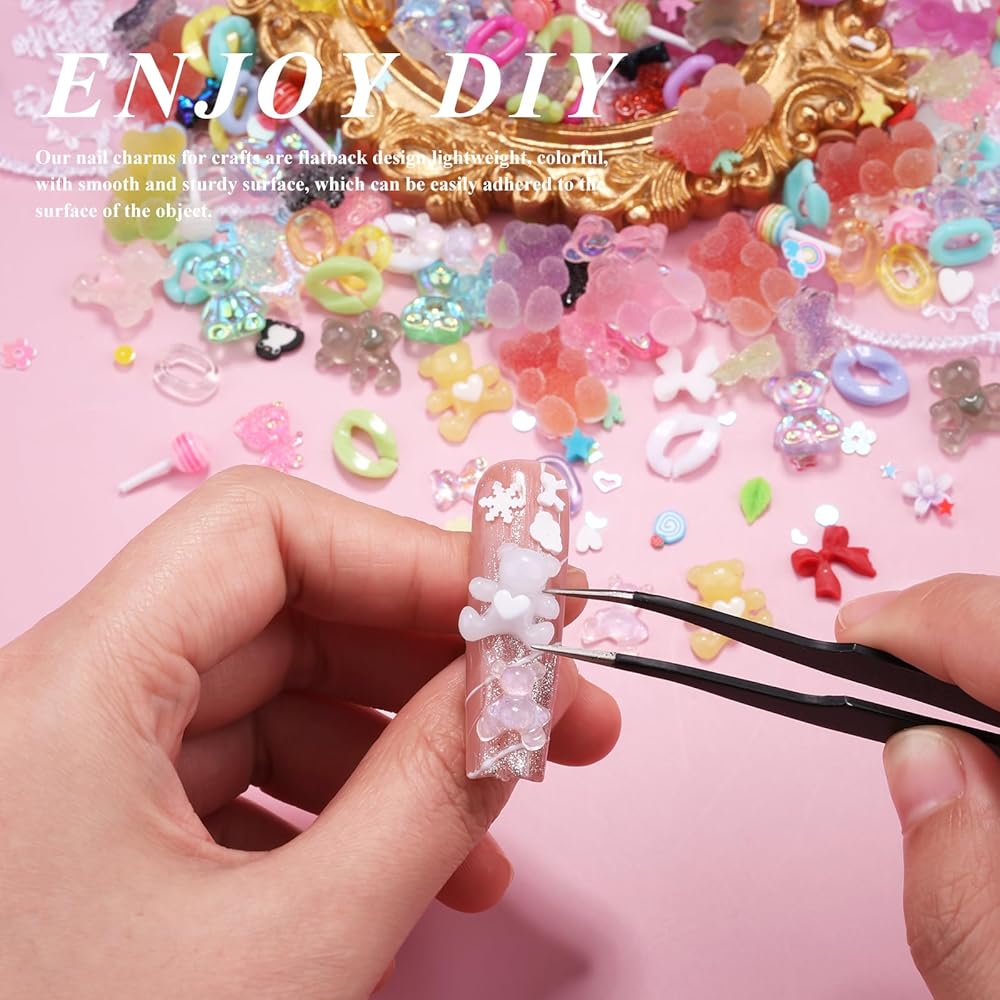 استخدام واسع: يمكن وضع مجموعة حلية الأظافر الأكريليك اللطيفة هذه في ديكورات فن الأظافر أو مجوهرات الراتنج، مثل سلسلة المفاتيح والقلائد والقلادة والأساور والمزيد. يمكن أيضًا تطبيقها على المشروعات اليدوية التي تصنعها بنفسك، وسجلات القصاصات، وفنون الأظافر، ودعوات الحفلات، وبطاقات المعايدة، وحشوات الراتنج والمزيد.