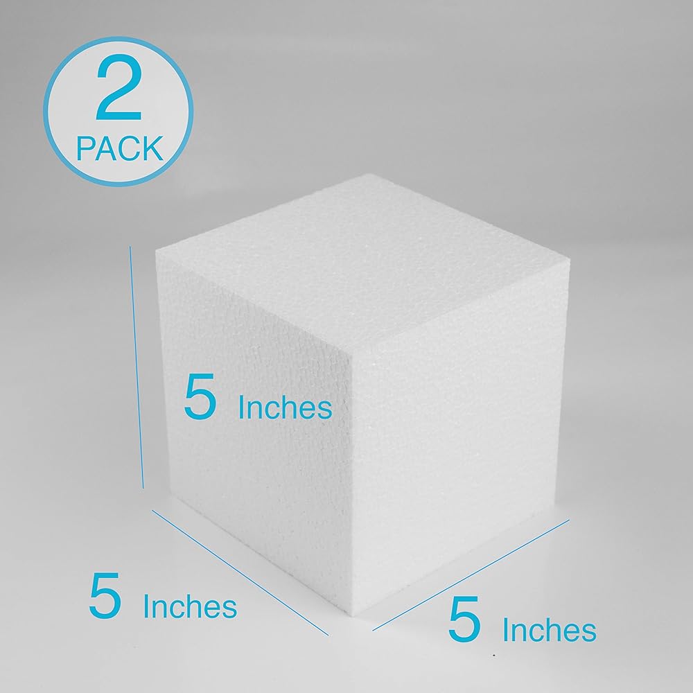 كتلة إسفنجية من سيلفرليك كرافت - عبوتان من مكعبات البوليسترين 5 × 5 × 5 EPS للصياغة والنمذجة والمشروعات الفنية وترتيبات الزهور - كتلة النحت للمشاريع الفنية المدرسية والمنزلية التي تصنعها بنفسك (عبوتان)