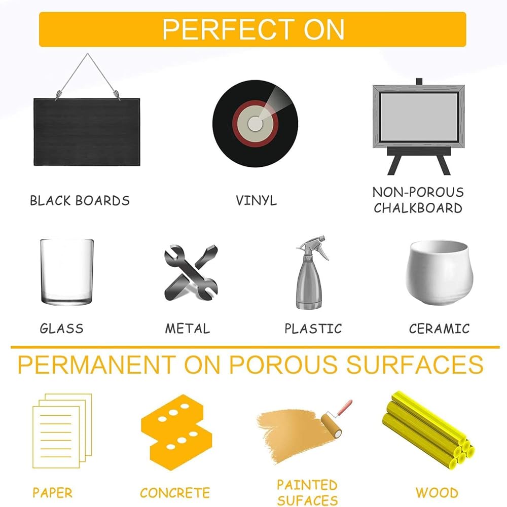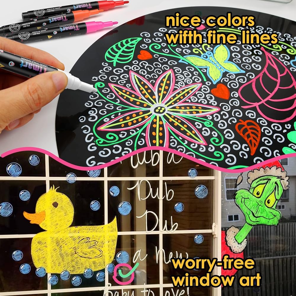 ممتعة وسهلة الاستخدام - أقلام السبورة ذات الأطراف الدقيقة هذه تمثل علامات نافذة رائعة وأقلام مسح جافة! استخدم أقلام الطباشير هذه للزجاج والبلاط وورق الاتصال والملصقات واللوحات البيضاء والبلاستيك والمعادن بسهولة. من المؤكد أن الطباشير السائل اللامع سيسعدك.