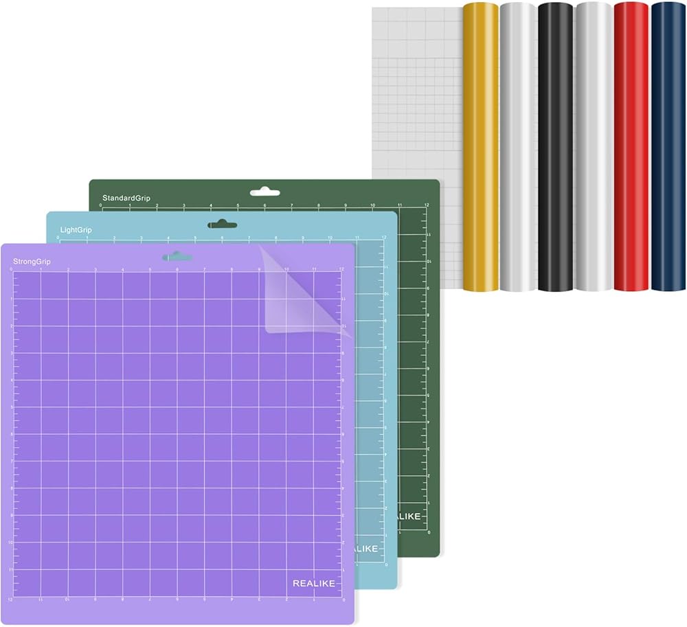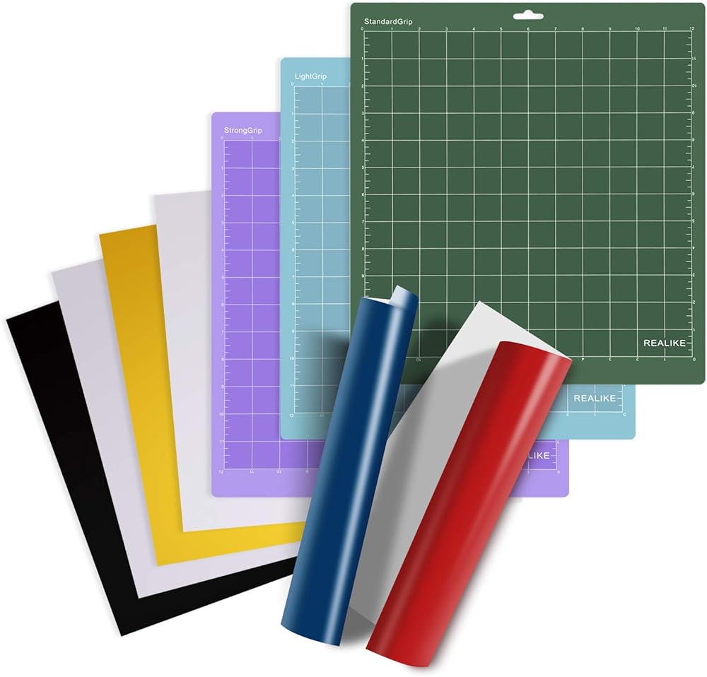 سجادات القطع مع حزمة الفينيل الدائمة: هناك سجادة قطع مقاس 30.48 سم × 30.48 سم لحزمة Cricut المكونة من 3 قطع، بما في ذلك سجادة قبضة خفيفة، وسجادة قبضة قياسية، وسجادة قبضة قوية، و5 ألوان مختلفة (أسود، أبيض، أزرق، أحمر، ذهبي) ذاتية اللصق دائمة أوراق الفينيل وورقة نقل شفافة إضافية.