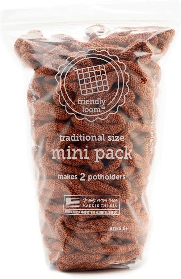 Harrisville 7-inch cotton loops kit makes 2 beautiful 6” x 6” potholders. Loom not included.